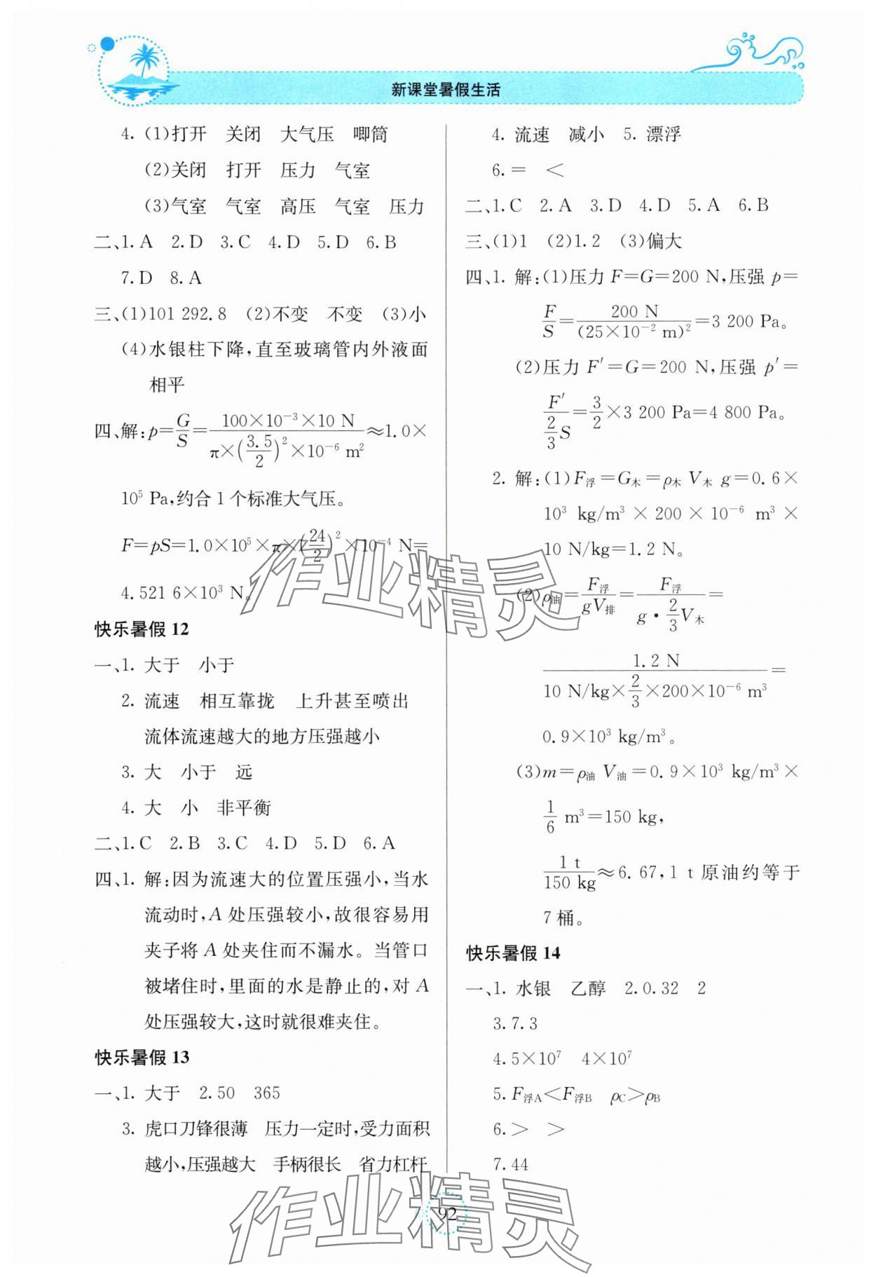 2025年新课堂暑假生活贵州教育出版社八年级物理人教版