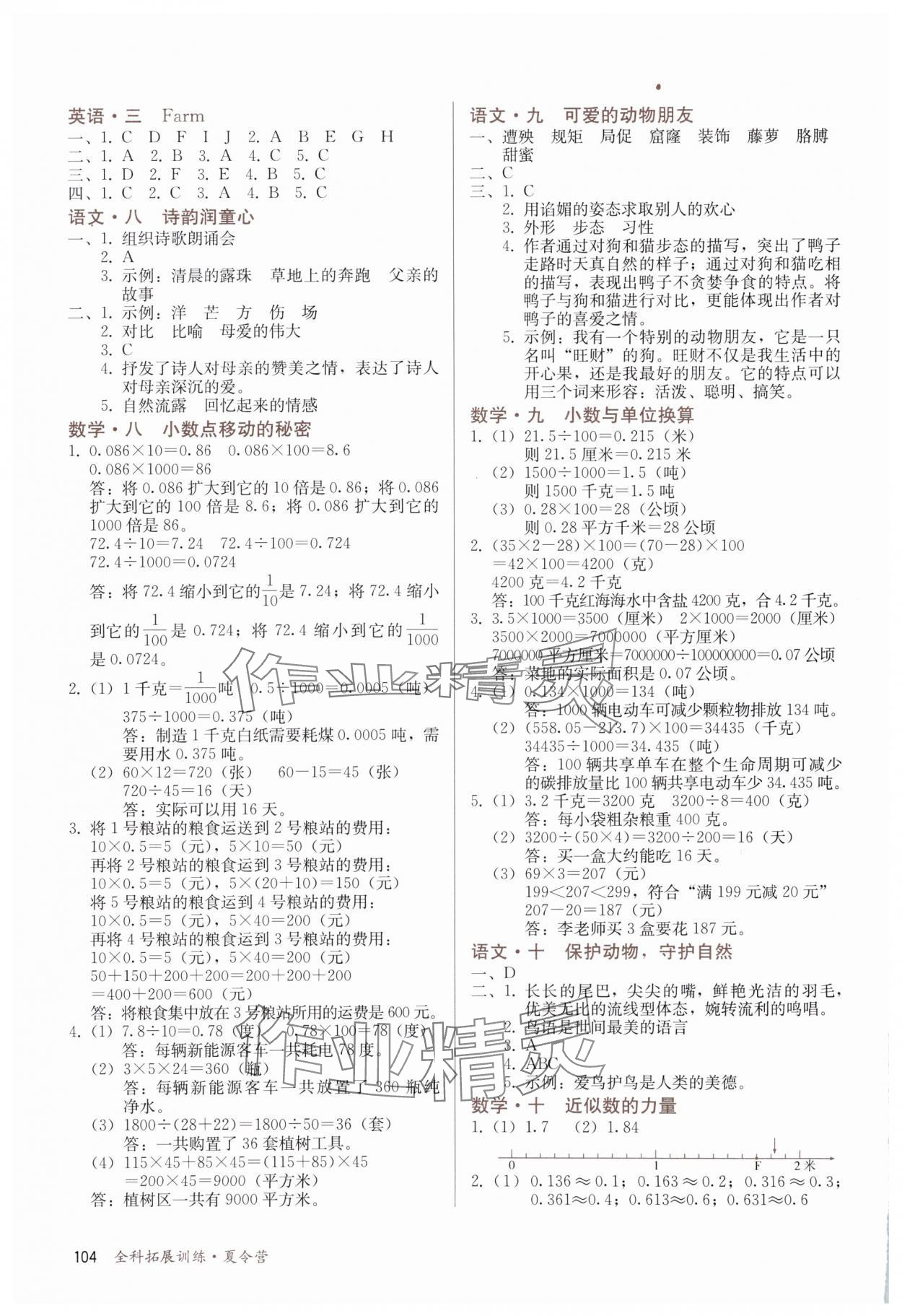 注:目前有些书本章节名称可能整理的还不是很完善,但都是按照顺序排列的,请同学们按照顺序仔细查找。练习册 2025年全科拓展训练夏令营四年级综合 答案主要是用来给同学们做完题方便对答案用的,请勿直接抄袭。