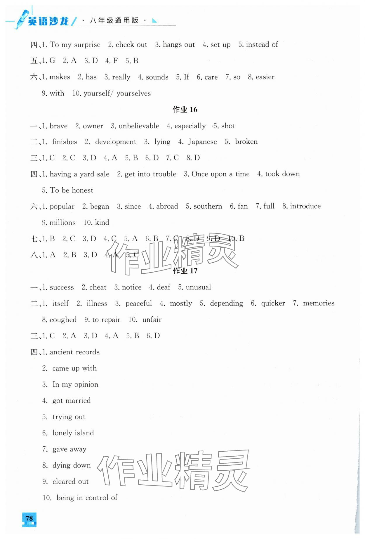 注:目前有些书本章节名称可能整理的还不是很完善,但都是按照顺序排列的,请同学们按照顺序仔细查找。练习册 2025年智趣夏令营英语沙龙八年级通用版 答案主要是用来给同学们做完题方便对答案用的,请勿直接抄袭。