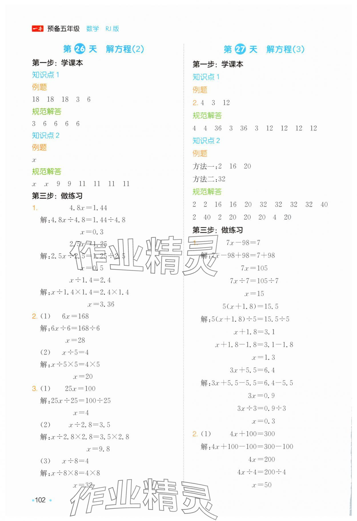 注:目前有些书本章节名称可能整理的还不是很完善,但都是按照顺序排列的,请同学们按照顺序仔细查找。练习册 2025年一本预备五年级数学人教版 答案主要是用来给同学们做完题方便对答案用的,请勿直接抄袭。