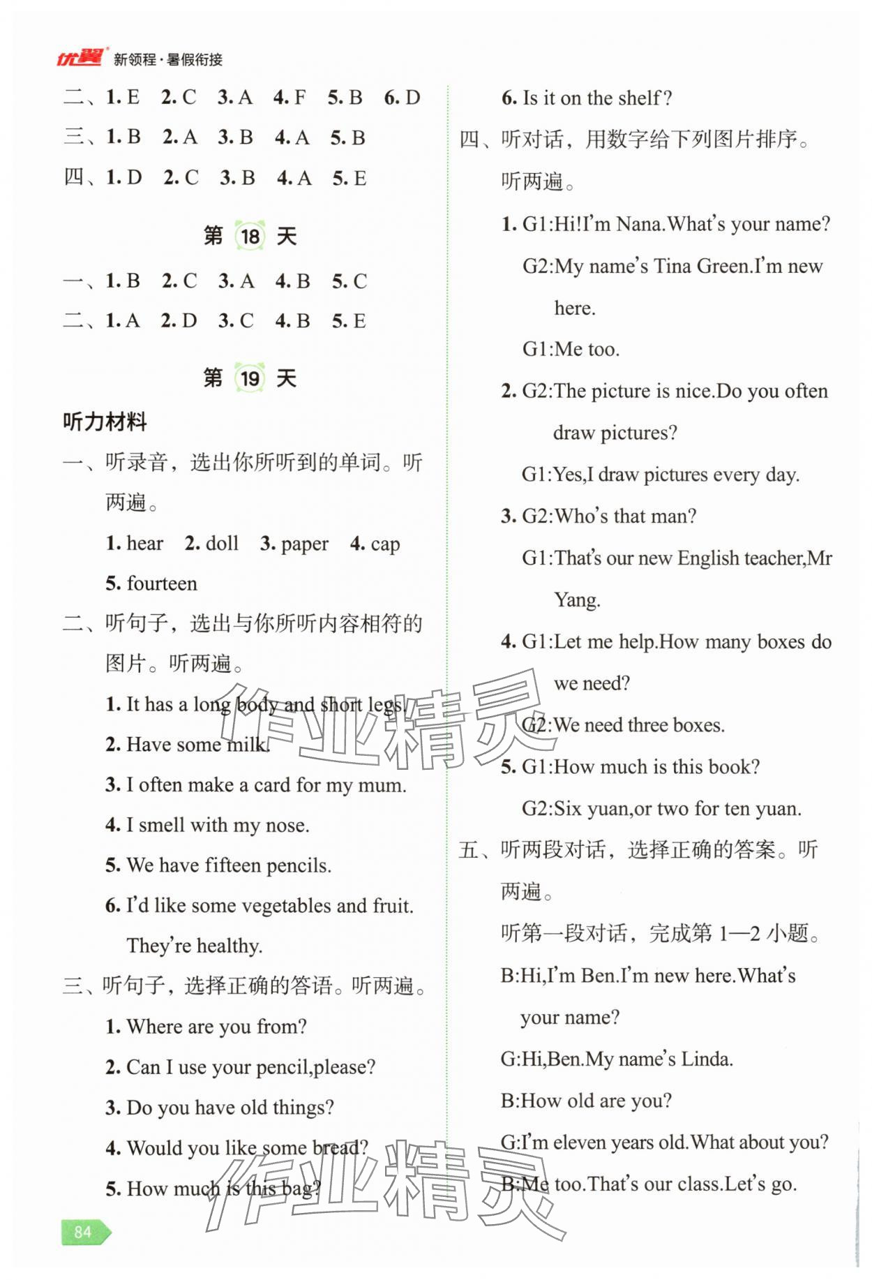 注:目前有些书本章节名称可能整理的还不是很完善,但都是按照顺序排列的,请同学们按照顺序仔细查找。练习册 2025年新领程暑假衔接三年级英语人教版 答案主要是用来给同学们做完题方便对答案用的,请勿直接抄袭。