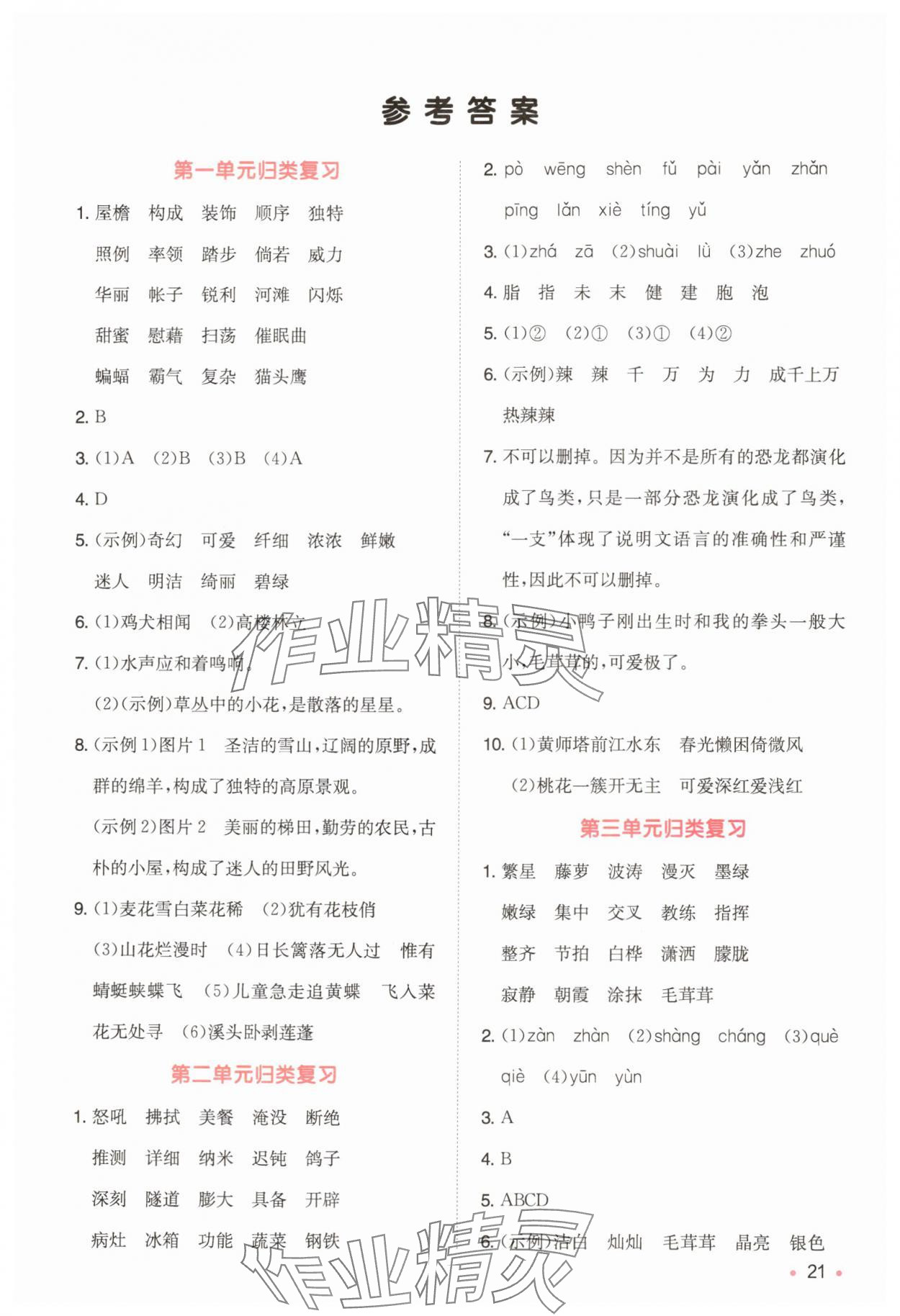 注:目前有些书本章节名称可能整理的还不是很完善,但都是按照顺序排列的,请同学们按照顺序仔细查找。练习册 2025年一本预备四年级语文人教版 答案主要是用来给同学们做完题方便对答案用的,请勿直接抄袭。