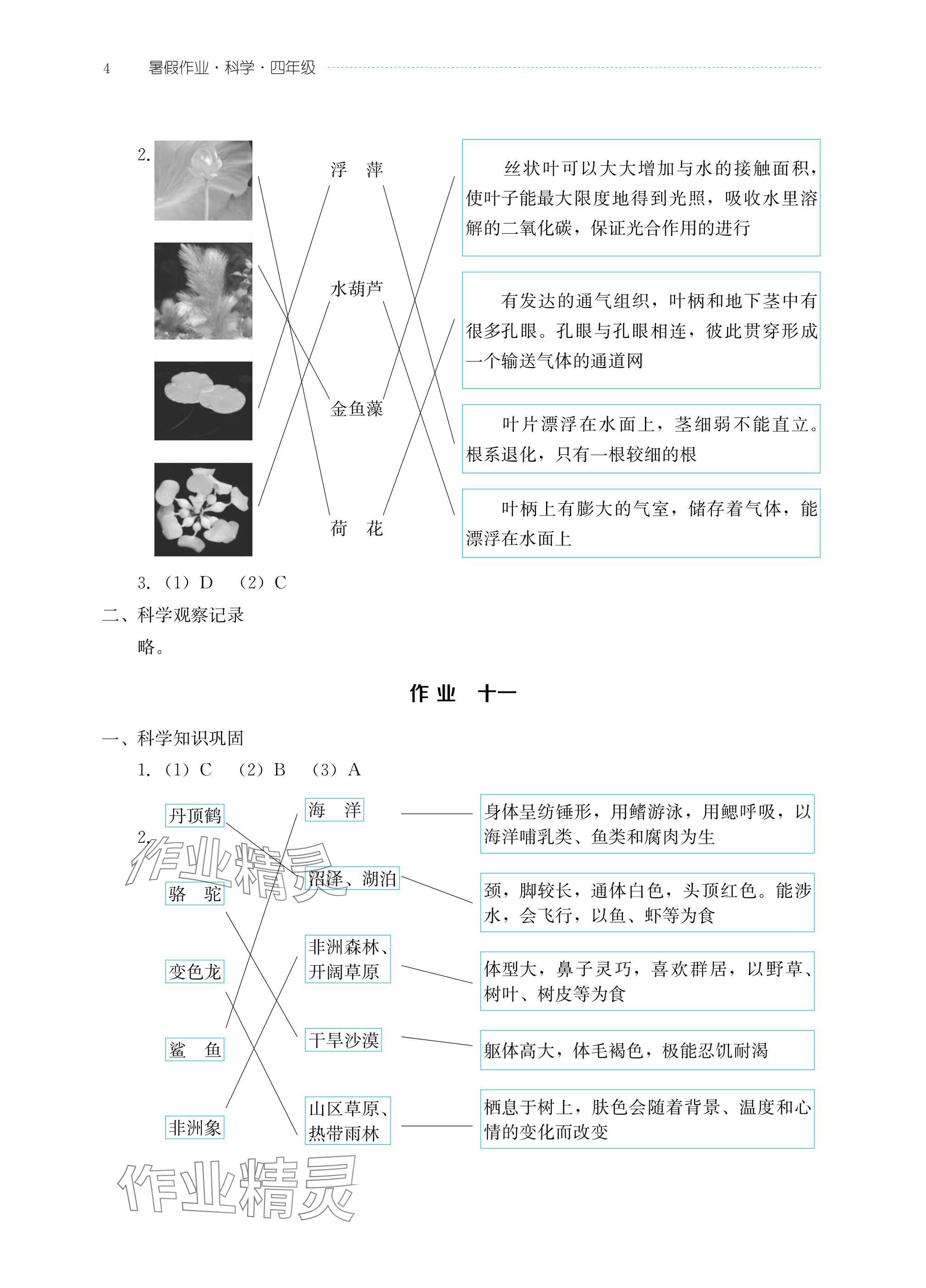2025年暑假作业湖北教育出版社四年级科学人教版鄂教版