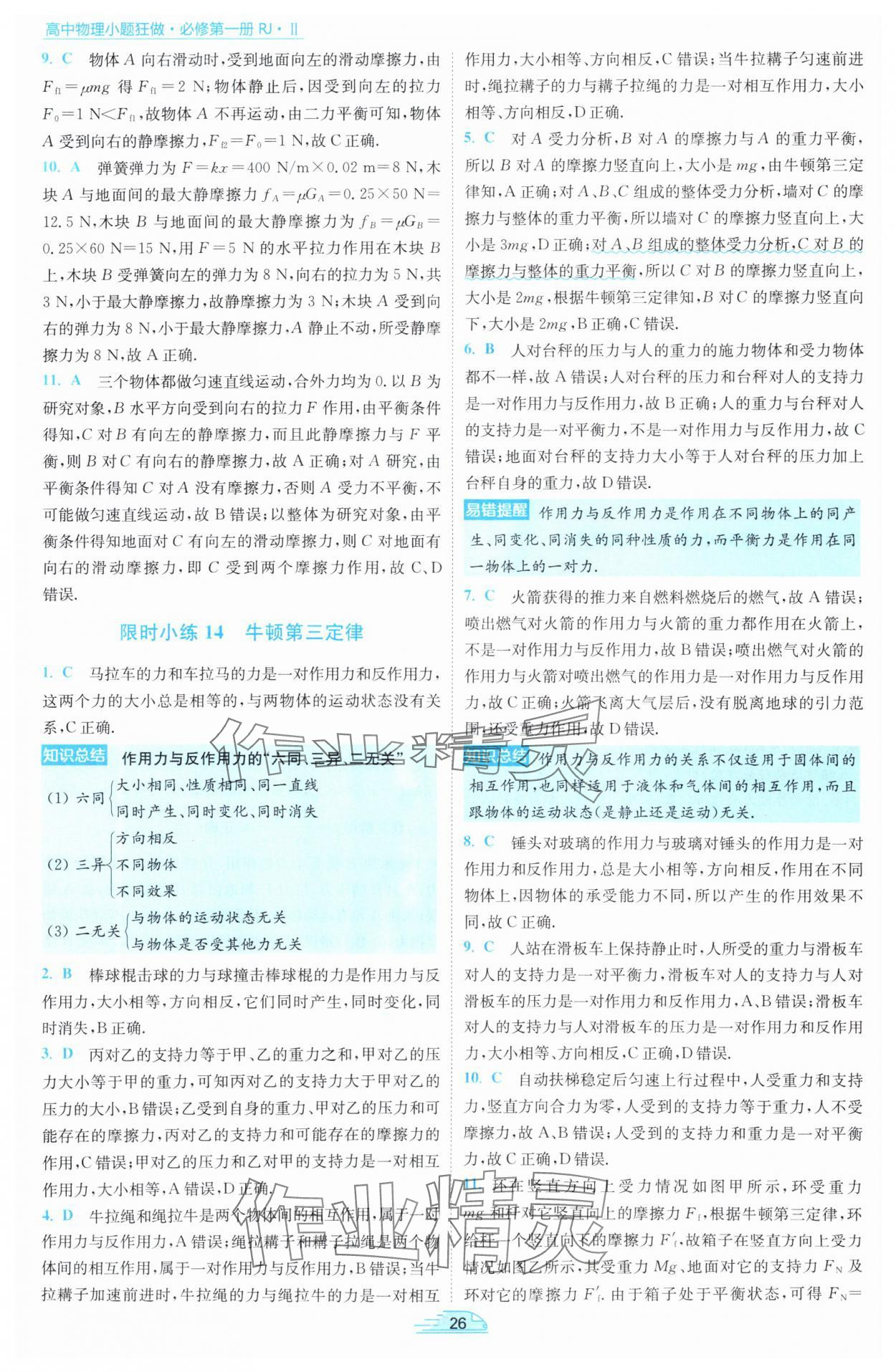 注:目前有些书本章节名称可能整理的还不是很完善,但都是按照顺序排列的,请同学们按照顺序仔细查找。练习册 2025年小题狂做高中物理必修第一册人教版 答案主要是用来给同学们做完题方便对答案用的,请勿直接抄袭。