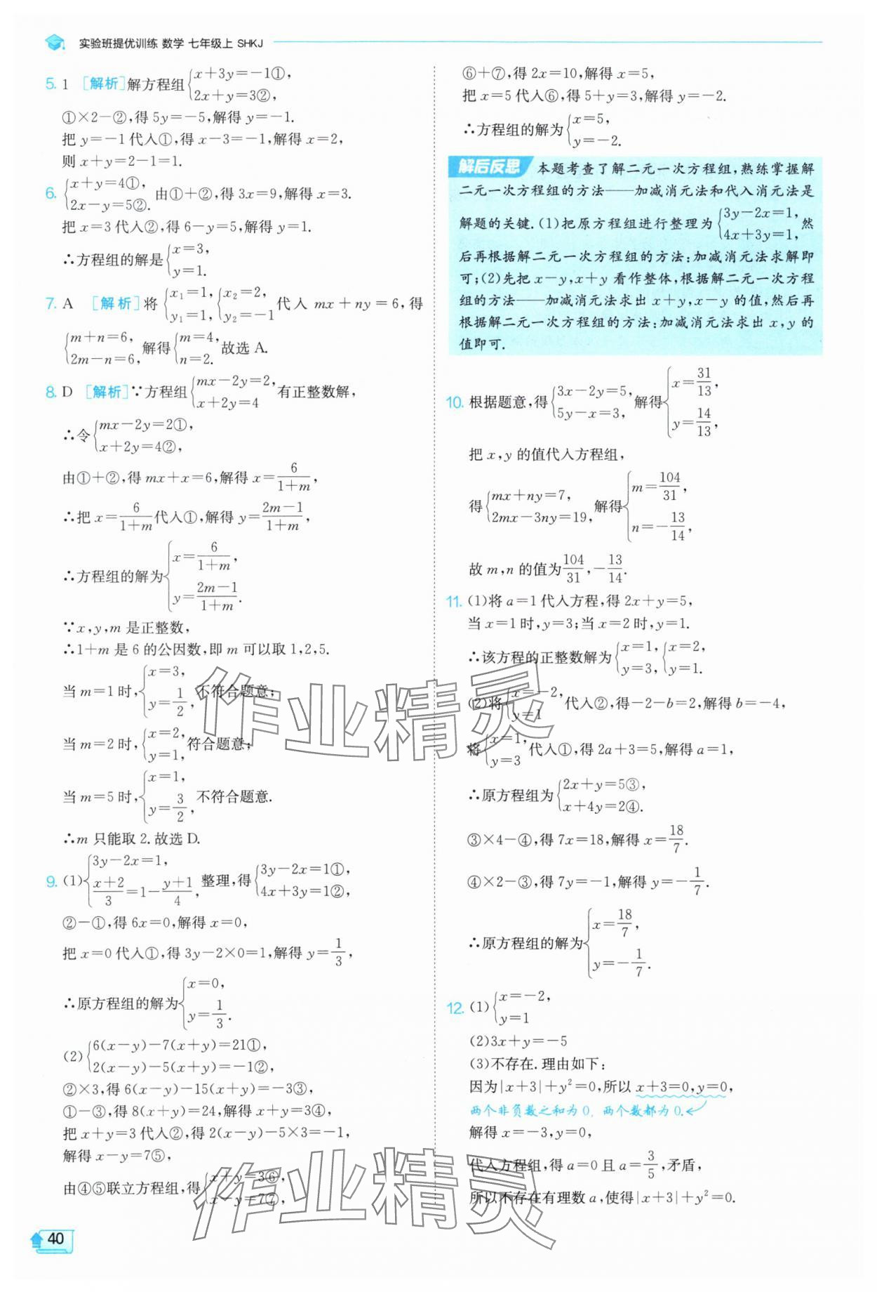 注:目前有些书本章节名称可能整理的还不是很完善,但都是按照顺序排列的,请同学们按照顺序仔细查找。练习册 2025年实验班提优训练七年级数学上册沪科版 答案主要是用来给同学们做完题方便对答案用的,请勿直接抄袭。