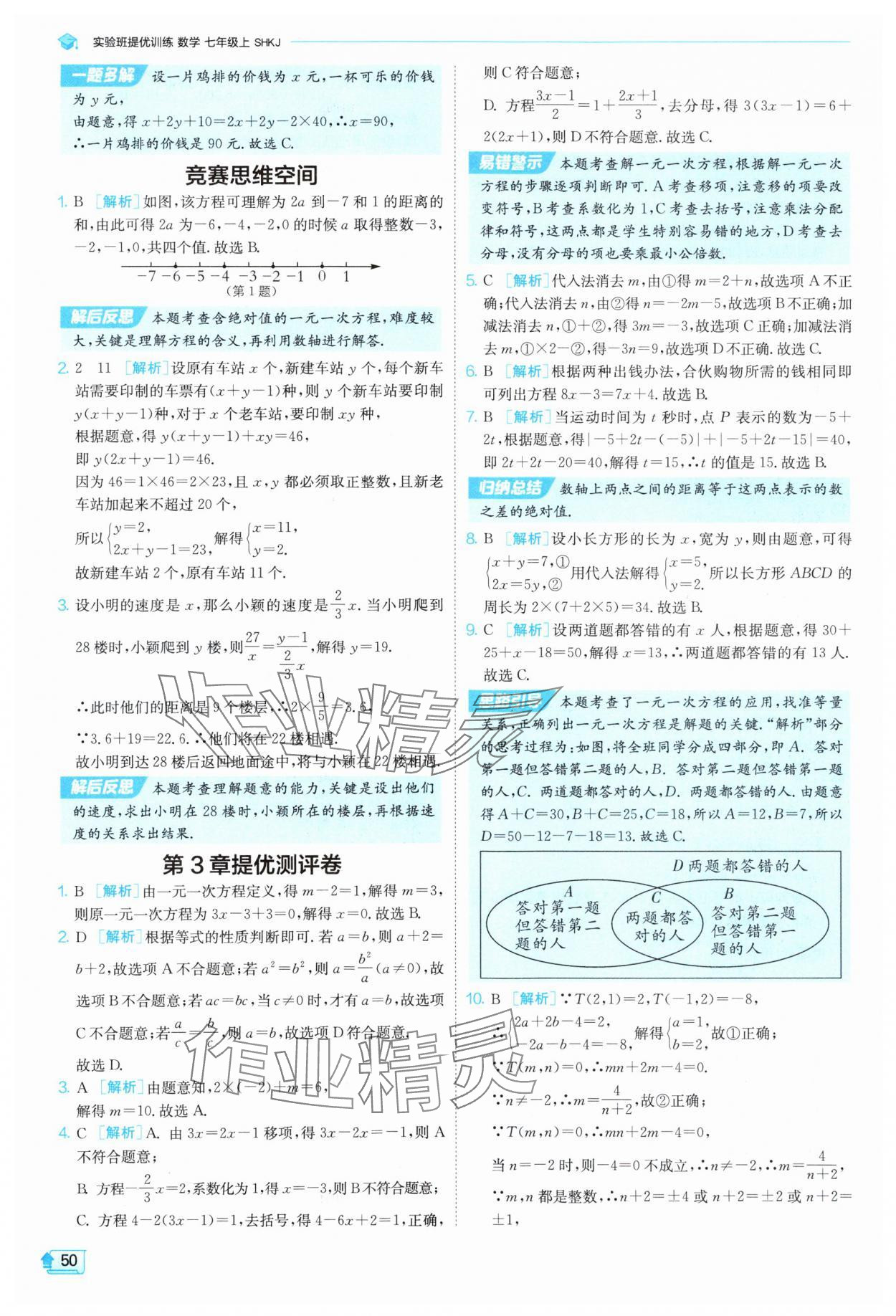 注:目前有些书本章节名称可能整理的还不是很完善,但都是按照顺序排列的,请同学们按照顺序仔细查找。练习册 2025年实验班提优训练七年级数学上册沪科版 答案主要是用来给同学们做完题方便对答案用的,请勿直接抄袭。