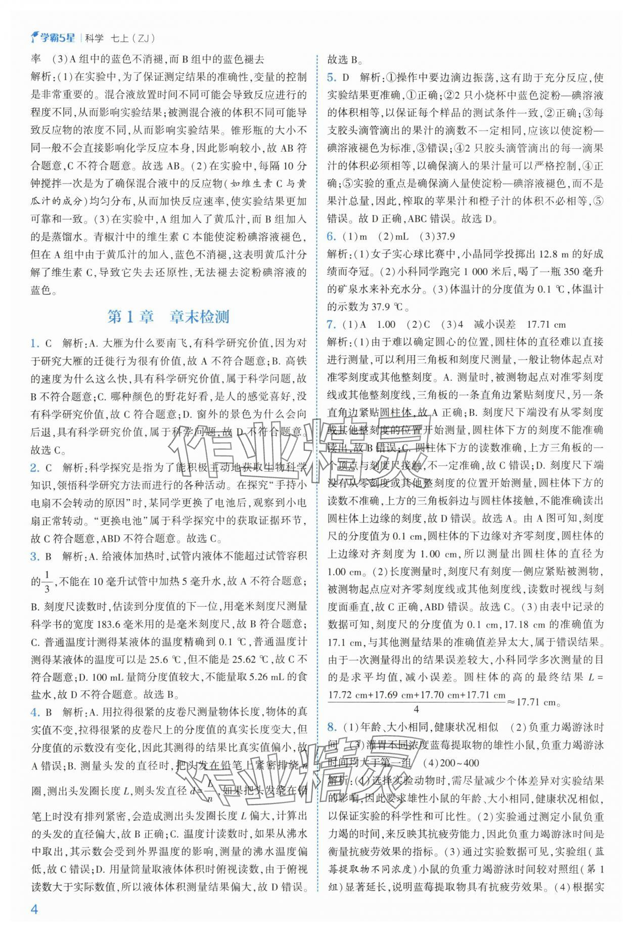 注:目前有些书本章节名称可能整理的还不是很完善,但都是按照顺序排列的,请同学们按照顺序仔细查找。练习册 2025年经纶学典5星学霸七年级科学上册浙教版 答案主要是用来给同学们做完题方便对答案用的,请勿直接抄袭。