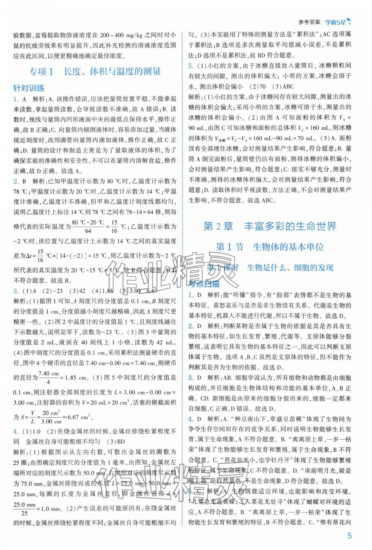 注:目前有些书本章节名称可能整理的还不是很完善,但都是按照顺序排列的,请同学们按照顺序仔细查找。练习册 2025年经纶学典5星学霸七年级科学上册浙教版 答案主要是用来给同学们做完题方便对答案用的,请勿直接抄袭。