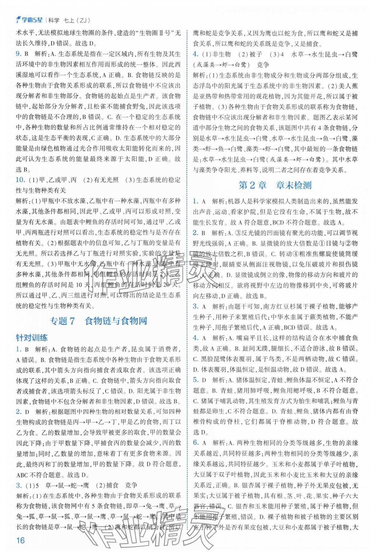 注:目前有些书本章节名称可能整理的还不是很完善,但都是按照顺序排列的,请同学们按照顺序仔细查找。练习册 2025年经纶学典5星学霸七年级科学上册浙教版 答案主要是用来给同学们做完题方便对答案用的,请勿直接抄袭。