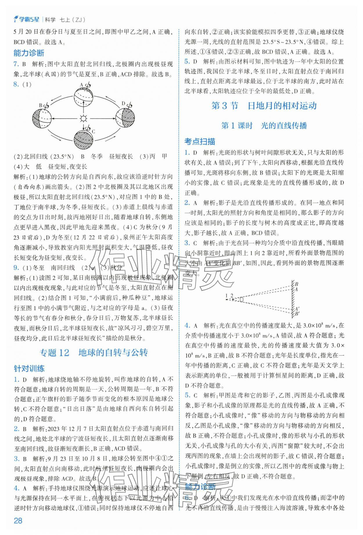 2025年经纶学典5星学霸七年级科学上册浙教版