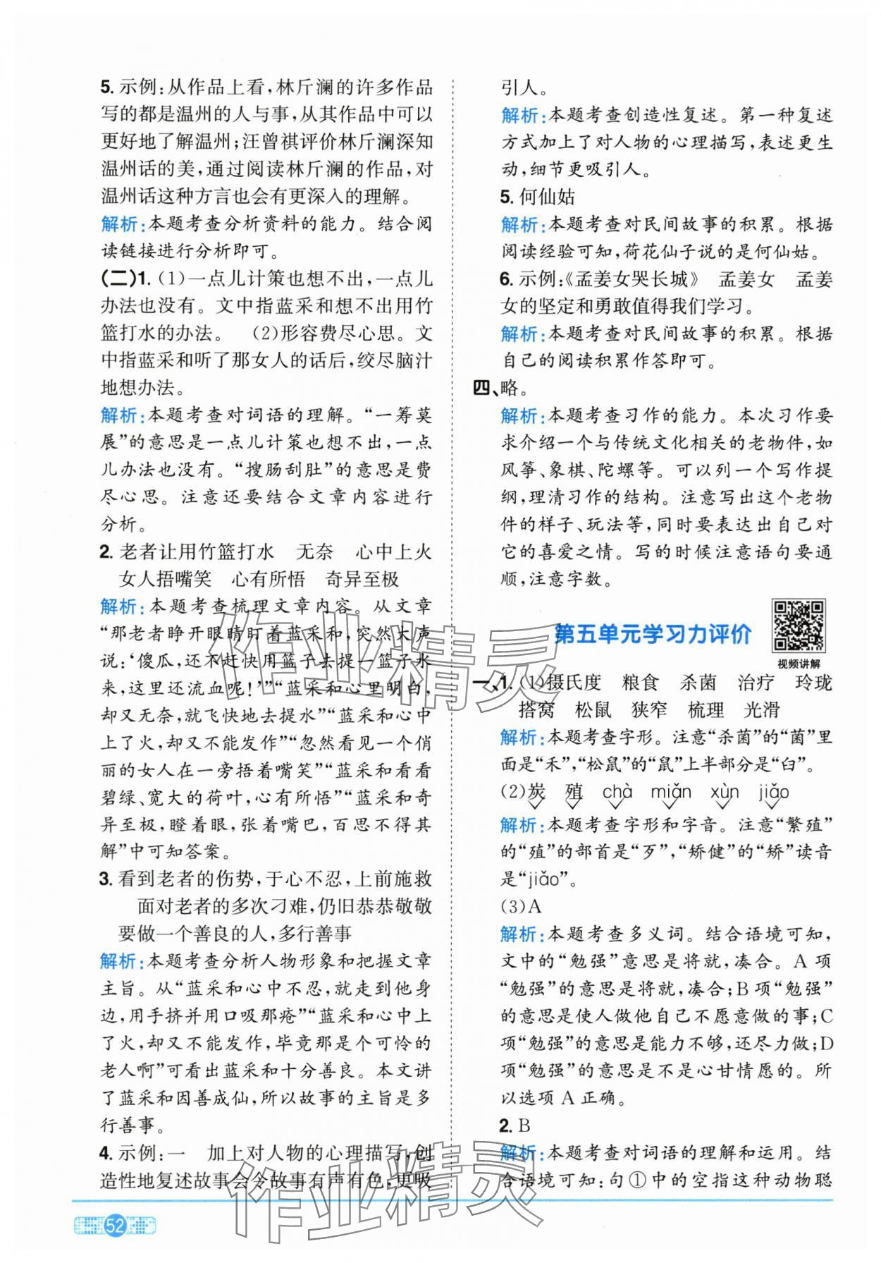 - 参考答案第52页