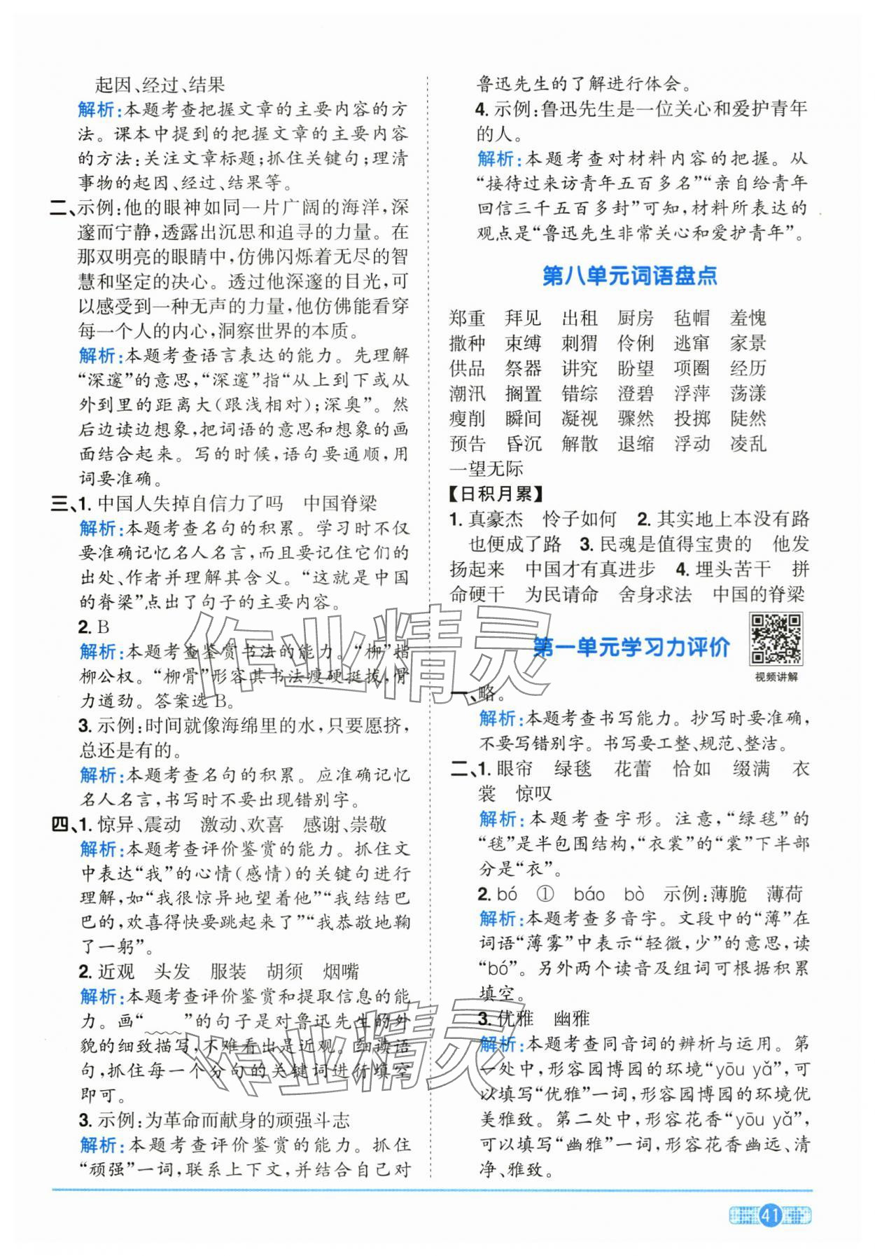 注:目前有些书本章节名称可能整理的还不是很完善,但都是按照顺序排列的,请同学们按照顺序仔细查找。练习册 2025年阳光同学课时全优训练六年级语文上册人教版浙江专版 答案主要是用来给同学们做完题方便对答案用的,请勿直接抄袭。