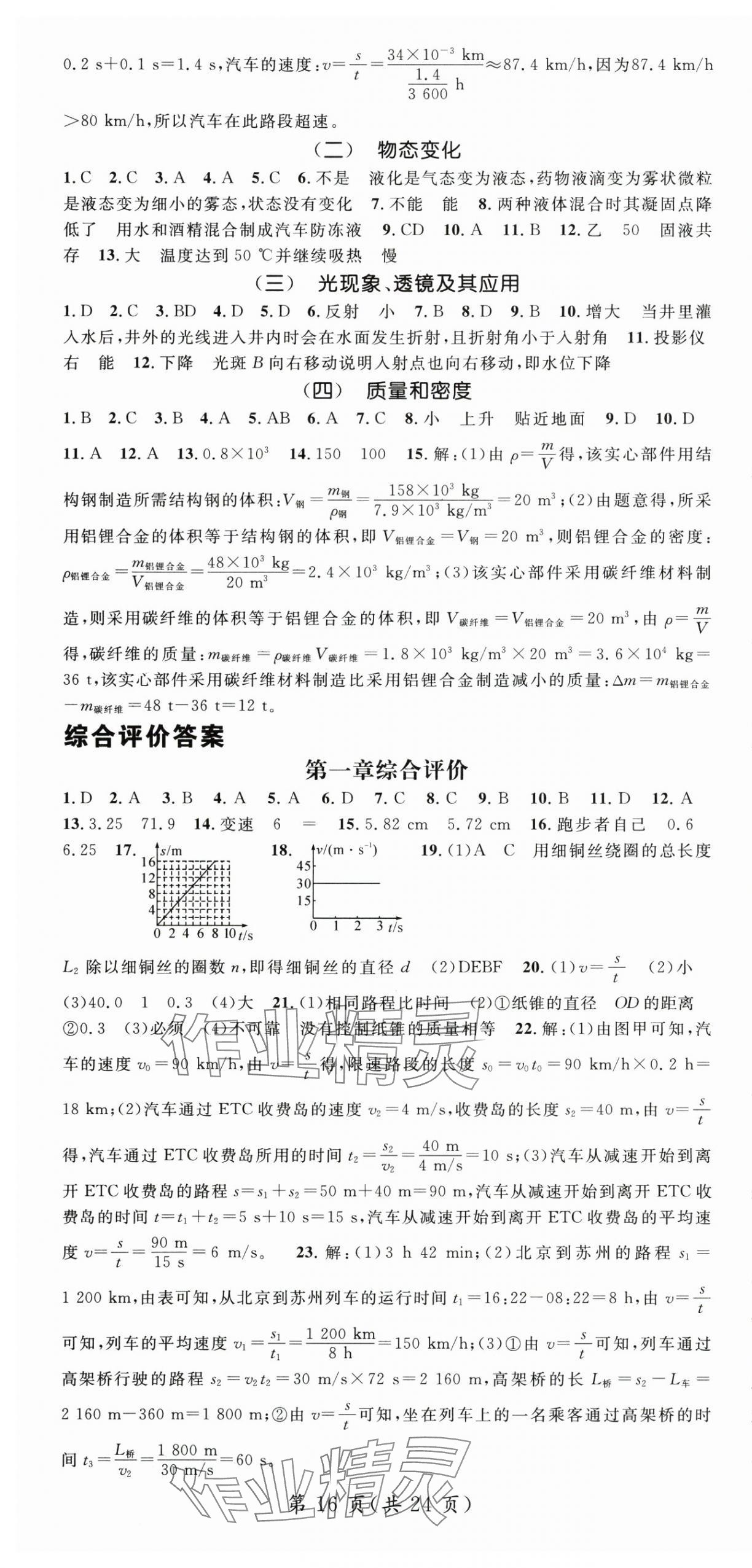 注:目前有些书本章节名称可能整理的还不是很完善,但都是按照顺序排列的,请同学们按照顺序仔细查找。练习册 2025年名师测控八年级物理上册人教版湖北专版 答案主要是用来给同学们做完题方便对答案用的,请勿直接抄袭。