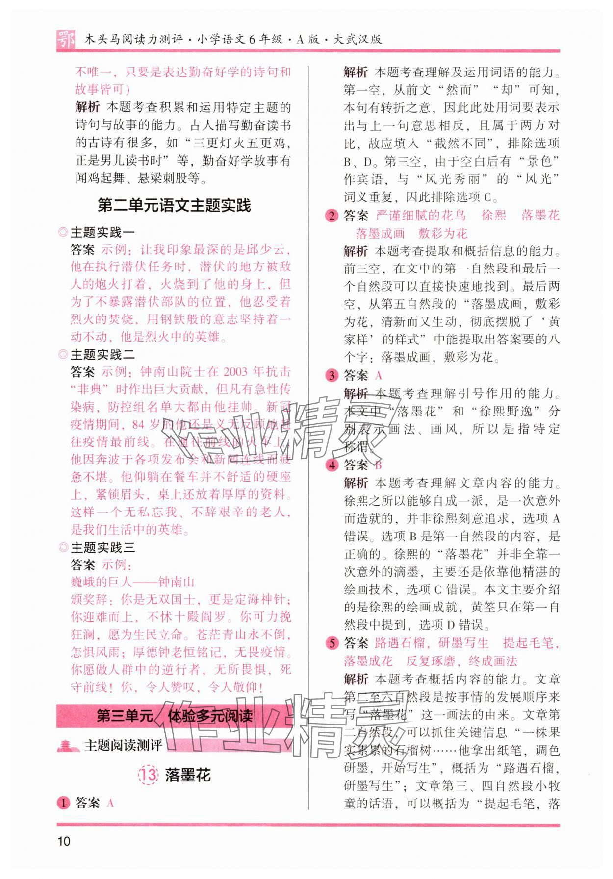 2025年木头马阅读力测评六年级语文全一册人教版A版武汉专版 参考答案第10页