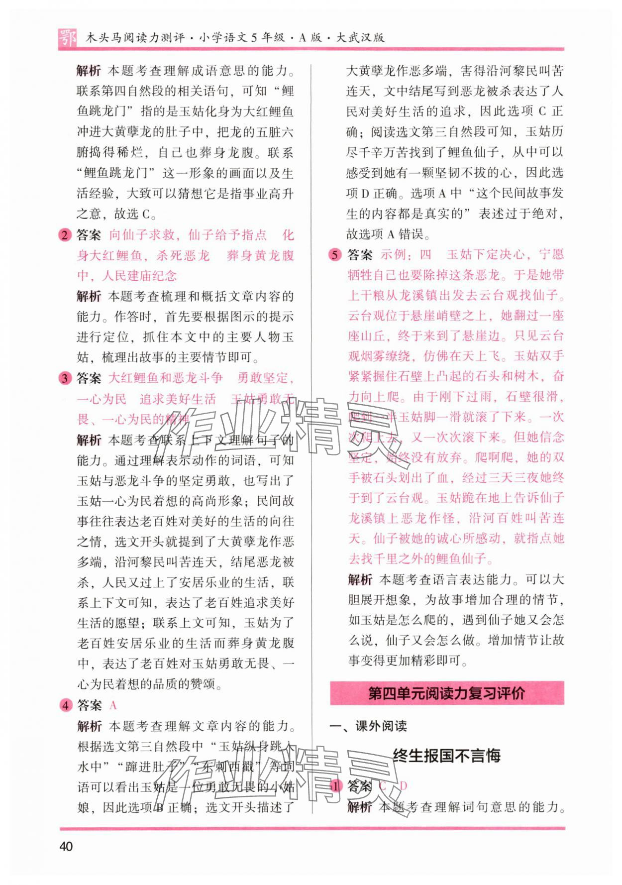 注:目前有些书本章节名称可能整理的还不是很完善,但都是按照顺序排列的,请同学们按照顺序仔细查找。练习册 2025年木头马阅读力测评五年级语文全一册人教版A版武汉专版 答案主要是用来给同学们做完题方便对答案用的,请勿直接抄袭。
