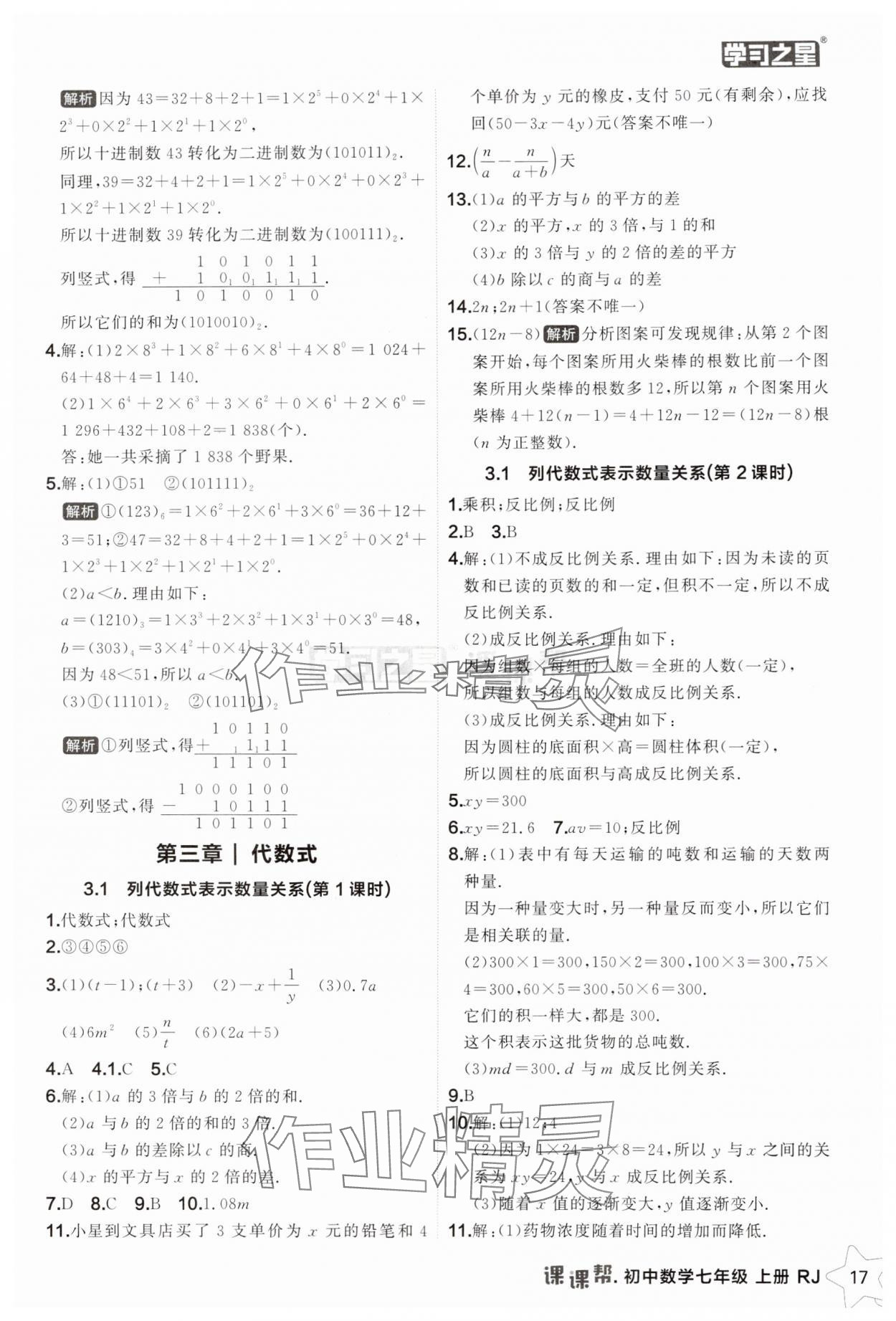 注:目前有些书本章节名称可能整理的还不是很完善,但都是按照顺序排列的,请同学们按照顺序仔细查找。练习册 2025年课课帮七年级数学上册人教版辽宁专版 答案主要是用来给同学们做完题方便对答案用的,请勿直接抄袭。