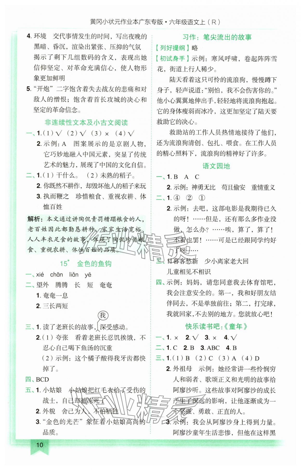 2025年黄冈小状元作业本六年级语文上册人教版广东专版