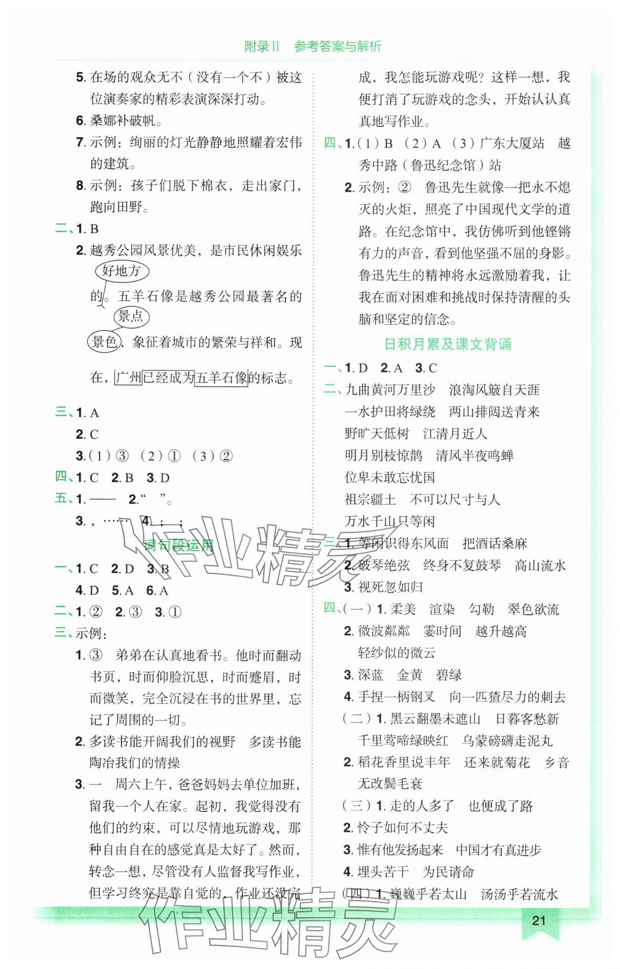 注:目前有些书本章节名称可能整理的还不是很完善,但都是按照顺序排列的,请同学们按照顺序仔细查找。练习册 2025年黄冈小状元作业本六年级语文上册人教版广东专版 答案主要是用来给同学们做完题方便对答案用的,请勿直接抄袭。