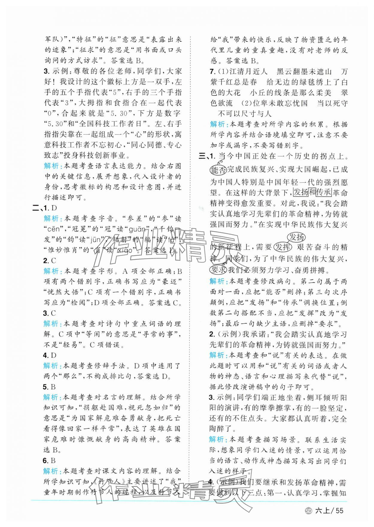 注:目前有些书本章节名称可能整理的还不是很完善,但都是按照顺序排列的,请同学们按照顺序仔细查找。练习册 2025年阳光同学课时优化作业六年级语文上册人教版菏泽专版 答案主要是用来给同学们做完题方便对答案用的,请勿直接抄袭。