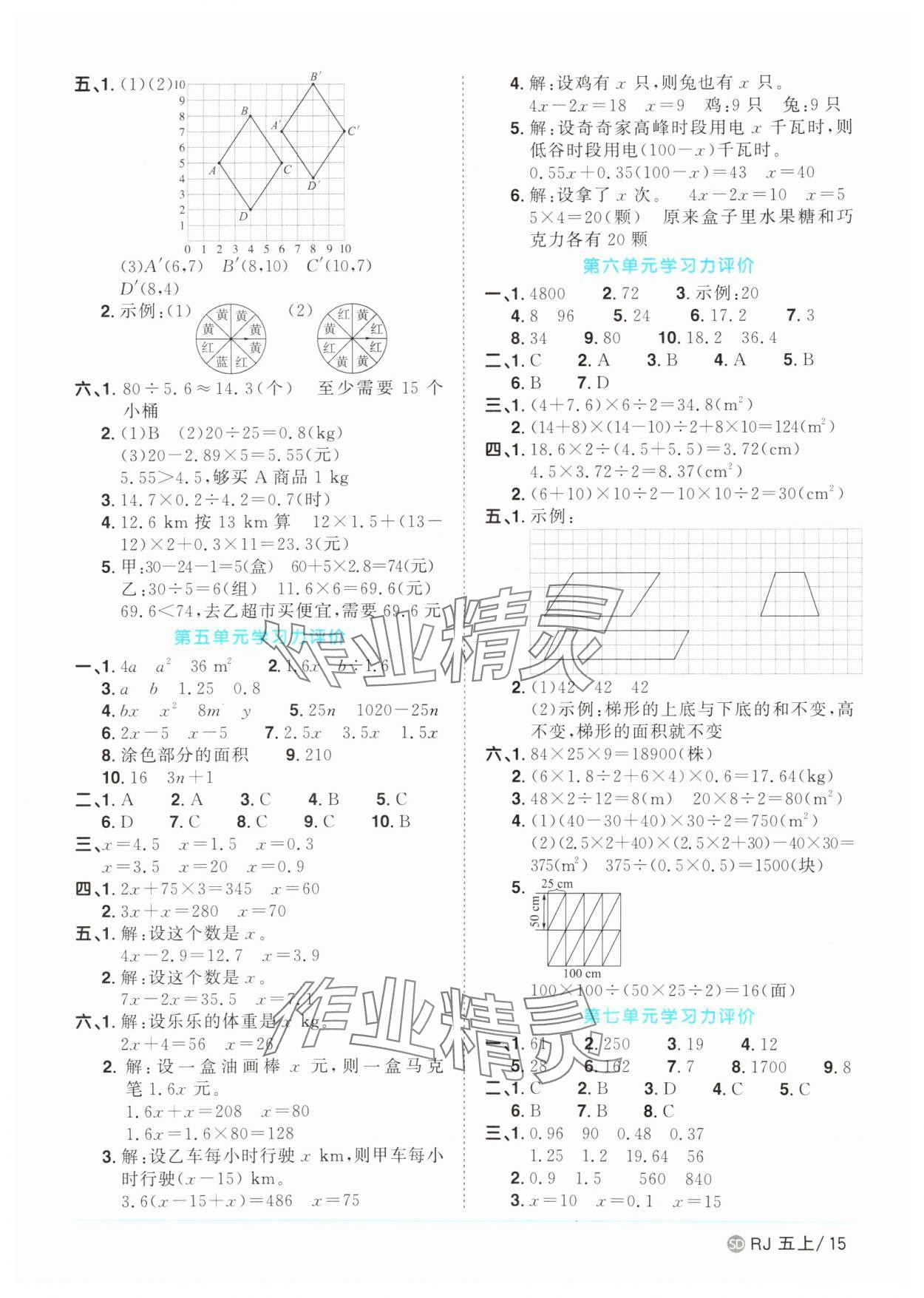 注:目前有些书本章节名称可能整理的还不是很完善,但都是按照顺序排列的,请同学们按照顺序仔细查找。练习册 2025年阳光同学课时优化作业五年级数学上册人教版菏泽专版 答案主要是用来给同学们做完题方便对答案用的,请勿直接抄袭。