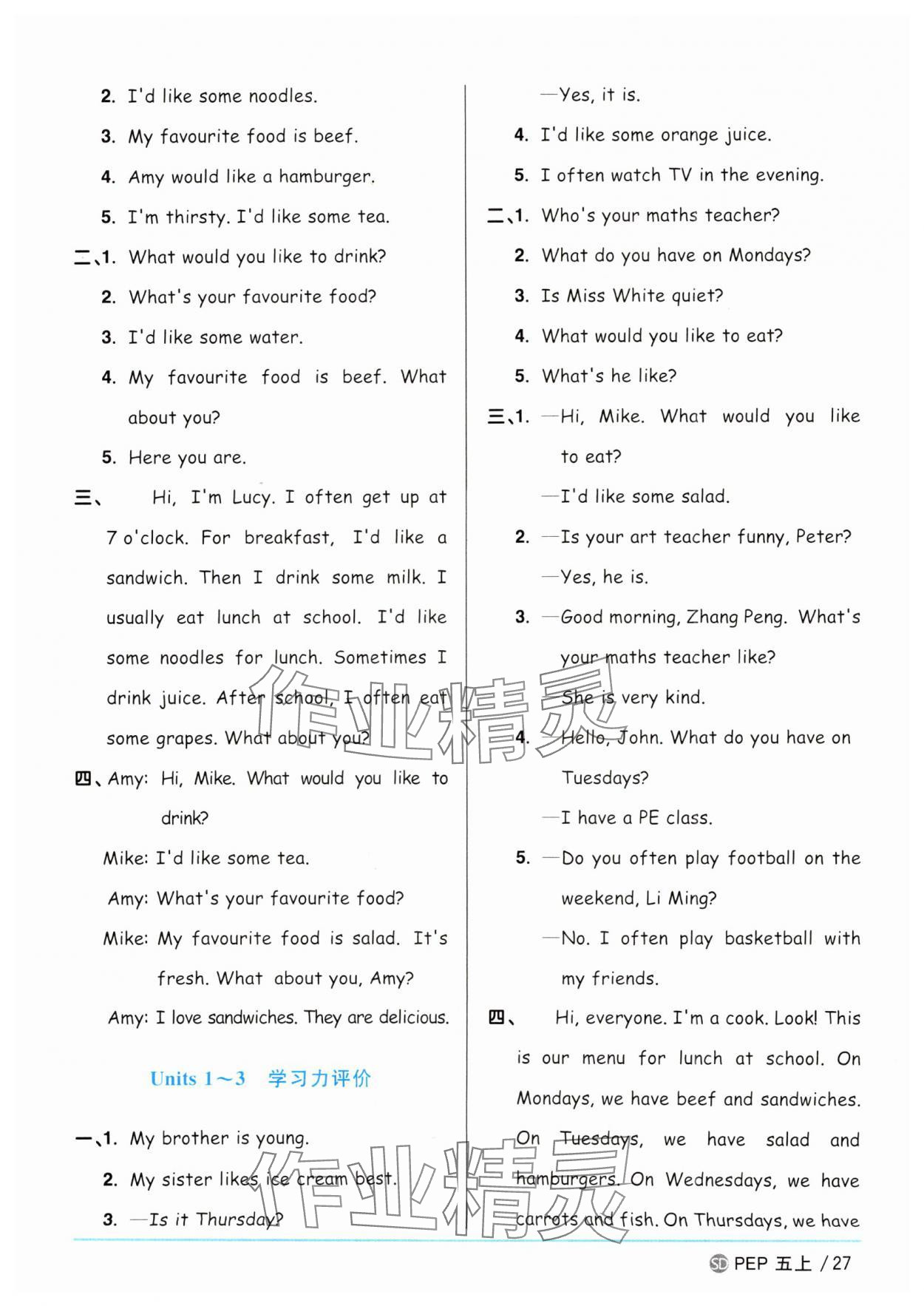 注:目前有些书本章节名称可能整理的还不是很完善,但都是按照顺序排列的,请同学们按照顺序仔细查找。练习册 2025年阳光同学课时优化作业四年级英语上册人教PEP版山东专版 答案主要是用来给同学们做完题方便对答案用的,请勿直接抄袭。