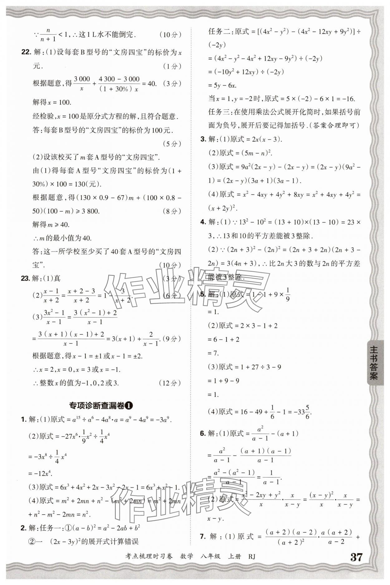 注:目前有些书本章节名称可能整理的还不是很完善,但都是按照顺序排列的,请同学们按照顺序仔细查找。练习册 2025年王朝霞考点梳理时习卷八年级数学上册人教版 答案主要是用来给同学们做完题方便对答案用的,请勿直接抄袭。