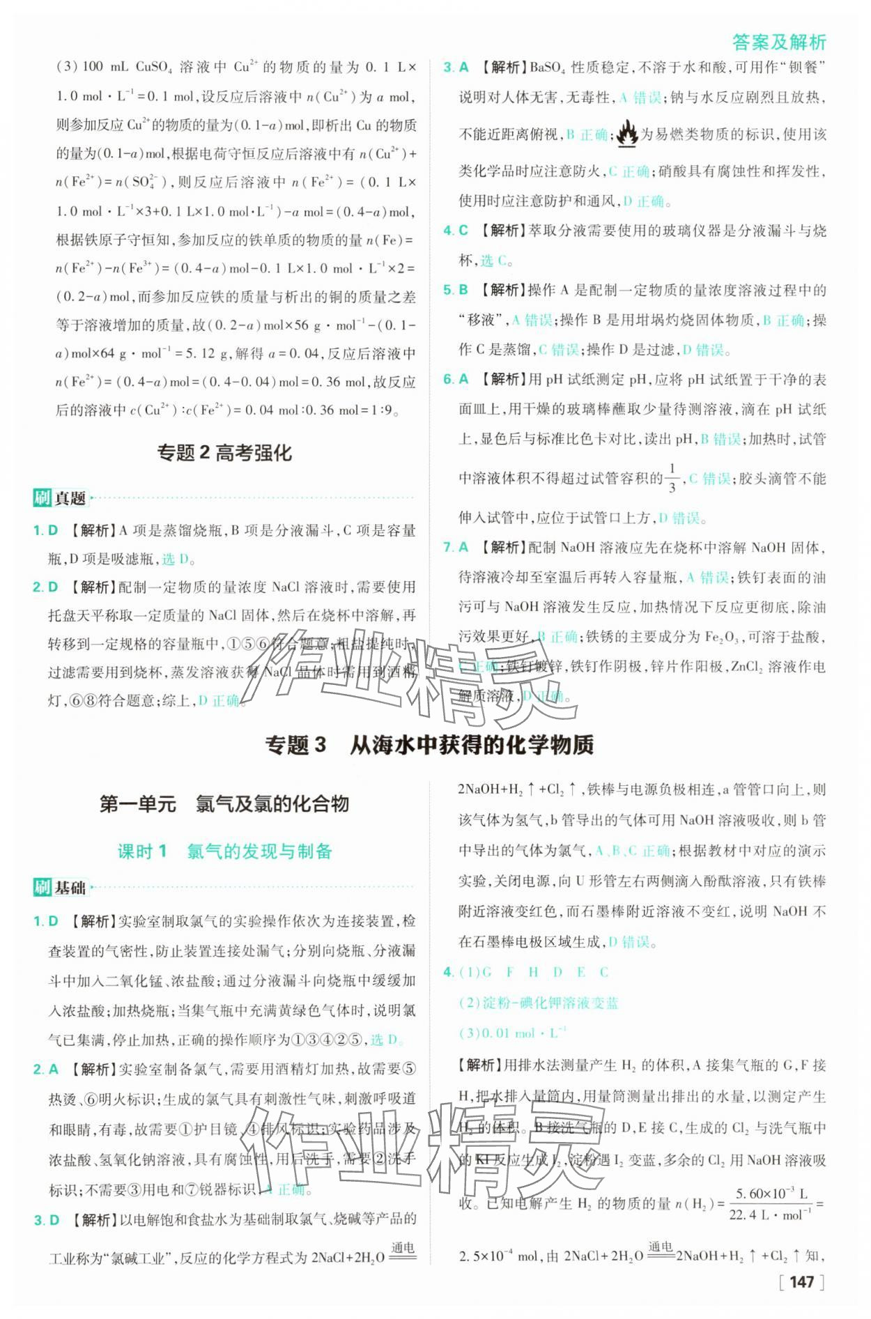 注:目前有些书本章节名称可能整理的还不是很完善,但都是按照顺序排列的,请同学们按照顺序仔细查找。练习册 2025年高中必刷题高一化学必修第一册苏教版 答案主要是用来给同学们做完题方便对答案用的,请勿直接抄袭。