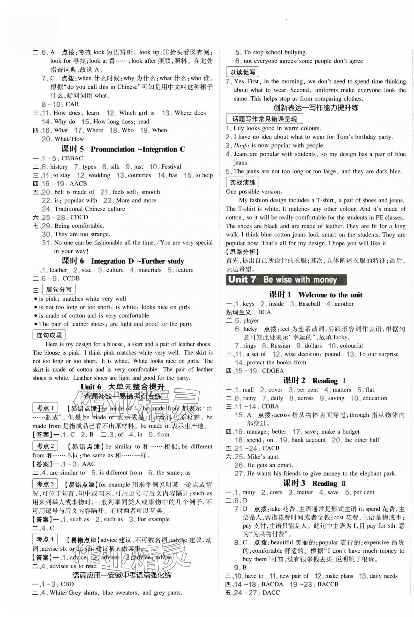 注:目前有些书本章节名称可能整理的还不是很完善,但都是按照顺序排列的,请同学们按照顺序仔细查找。练习册 2025年点拨训练七年级英语上册译林版安徽专版 答案主要是用来给同学们做完题方便对答案用的,请勿直接抄袭。