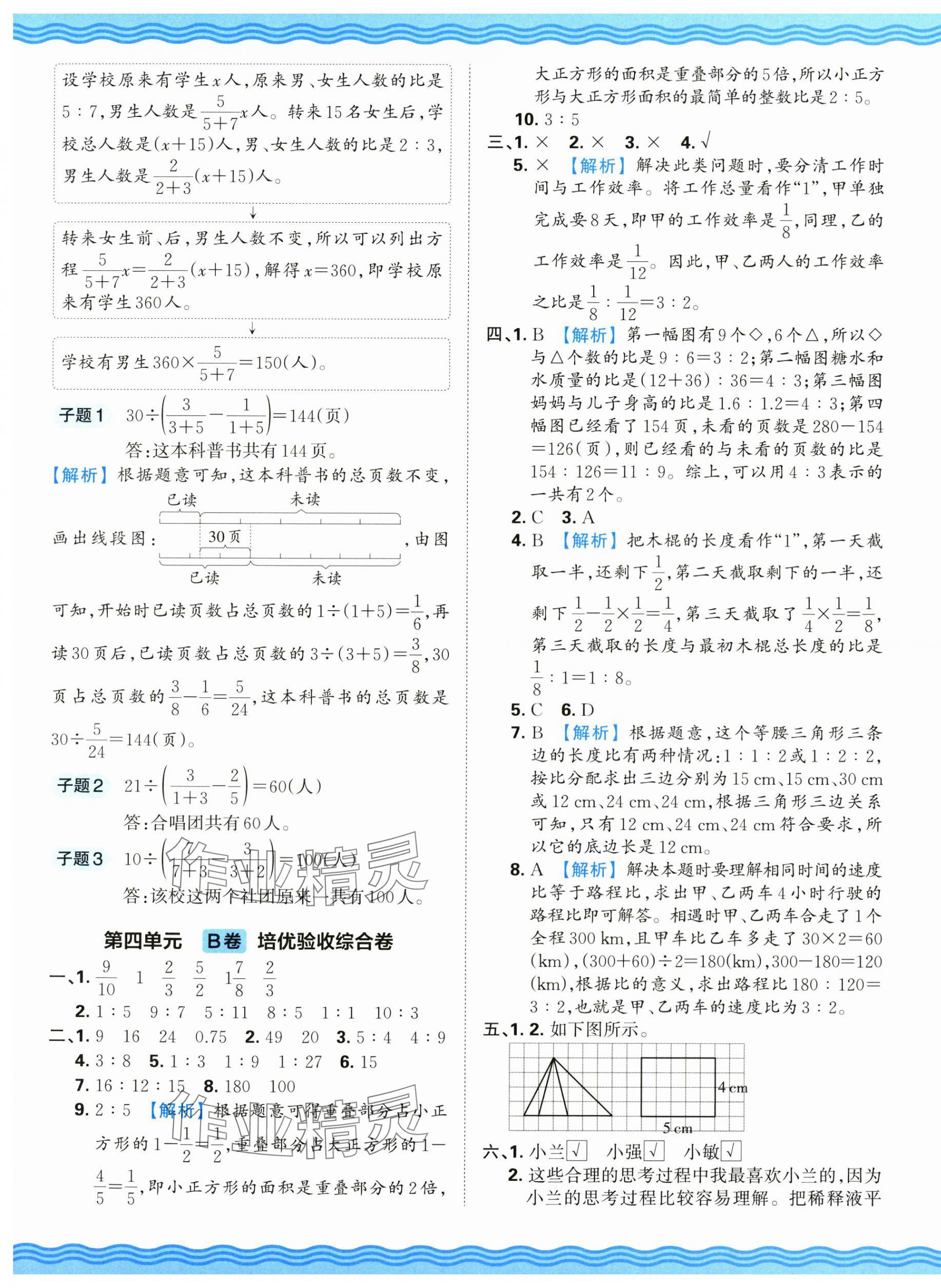 注:目前有些书本章节名称可能整理的还不是很完善,但都是按照顺序排列的,请同学们按照顺序仔细查找。练习册 2025年王朝霞培优100分六年级数学上册人教版 答案主要是用来给同学们做完题方便对答案用的,请勿直接抄袭。