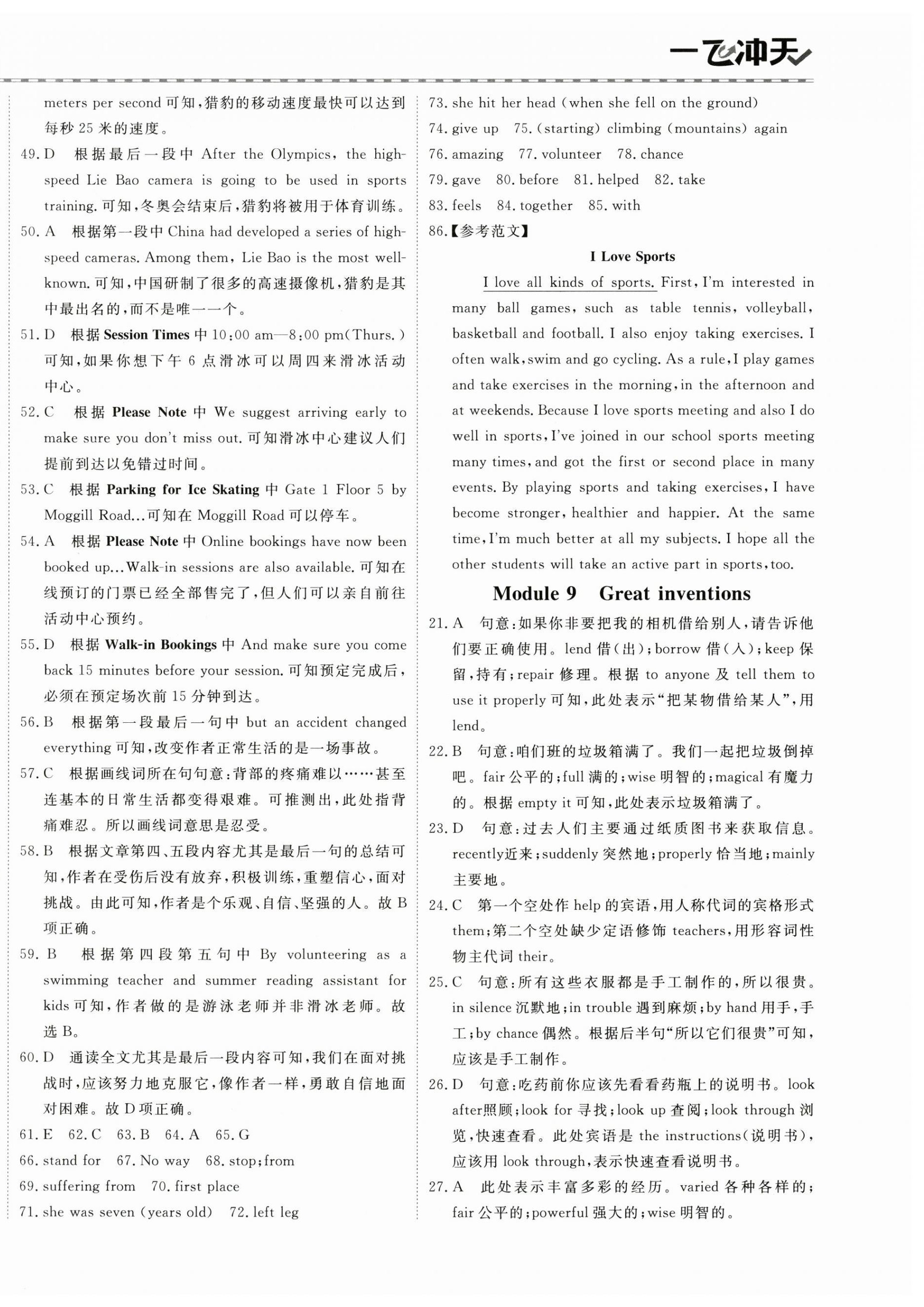 注:目前有些书本章节名称可能整理的还不是很完善,但都是按照顺序排列的,请同学们按照顺序仔细查找。练习册 2025年一飞冲天同步训练九年级英语全一册外研版 答案主要是用来给同学们做完题方便对答案用的,请勿直接抄袭。