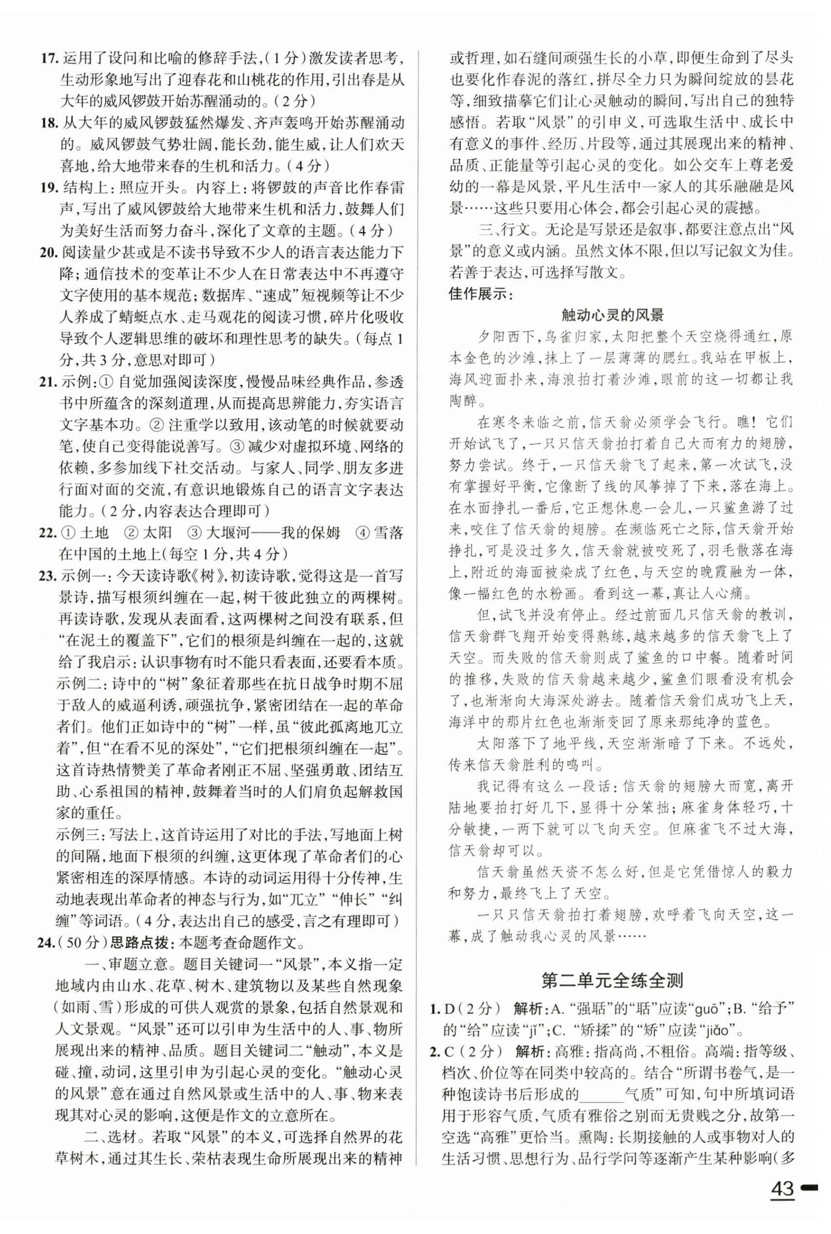 注:目前有些书本章节名称可能整理的还不是很完善,但都是按照顺序排列的,请同学们按照顺序仔细查找。练习册 2025年教材全练九年级语文上册人教版天津专用 答案主要是用来给同学们做完题方便对答案用的,请勿直接抄袭。