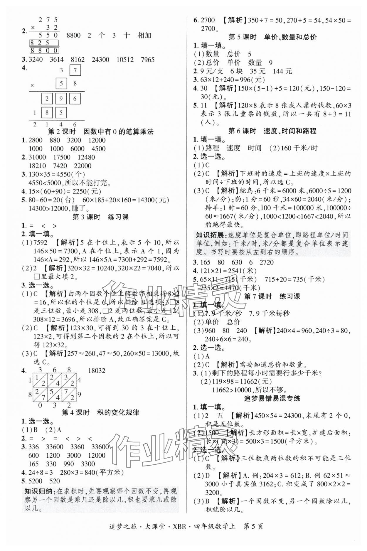 2025年追梦之旅大课堂四年级数学上册人教版河南专版