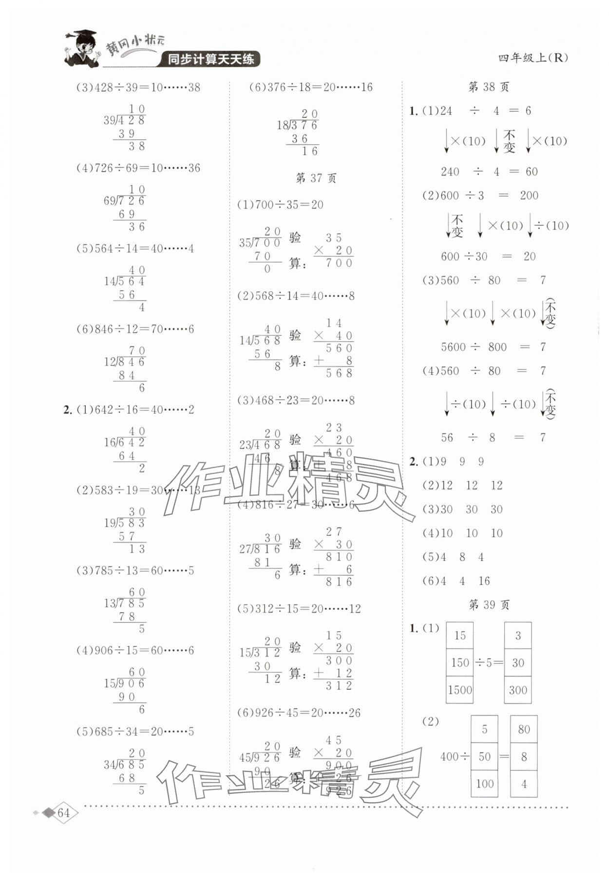 注:目前有些书本章节名称可能整理的还不是很完善,但都是按照顺序排列的,请同学们按照顺序仔细查找。练习册 2025年黄冈小状元同步计算天天练四年级数学上册人教版广东专版 答案主要是用来给同学们做完题方便对答案用的,请勿直接抄袭。