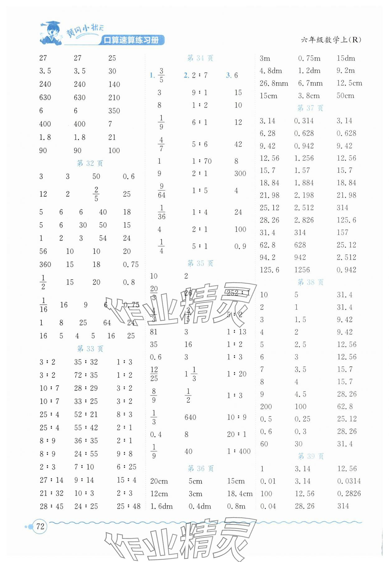 注:目前有些书本章节名称可能整理的还不是很完善,但都是按照顺序排列的,请同学们按照顺序仔细查找。练习册 2025年黄冈小状元口算速算练习册六年级数学上册人教版广东专版 答案主要是用来给同学们做完题方便对答案用的,请勿直接抄袭。