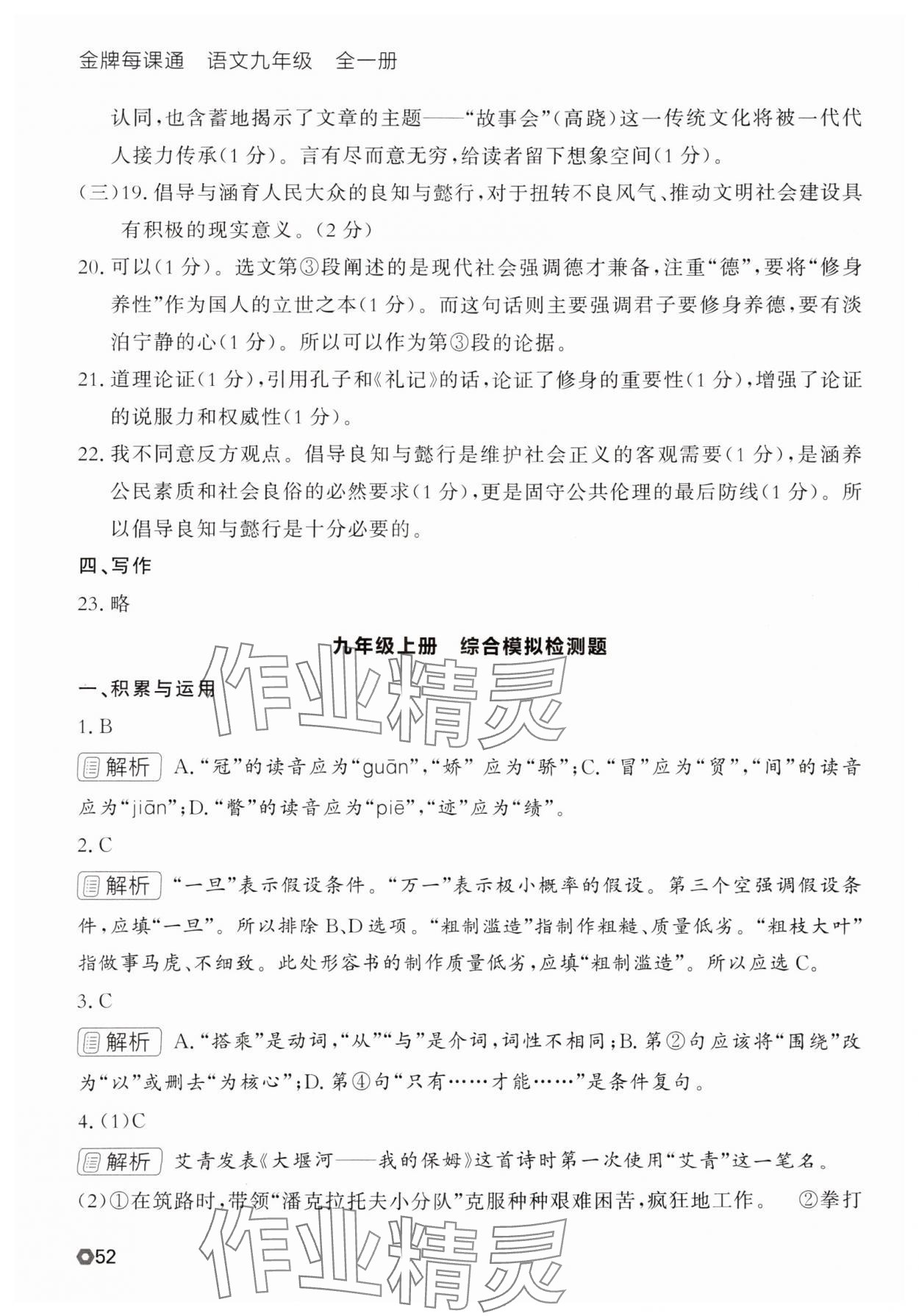 - 参考答案第52页