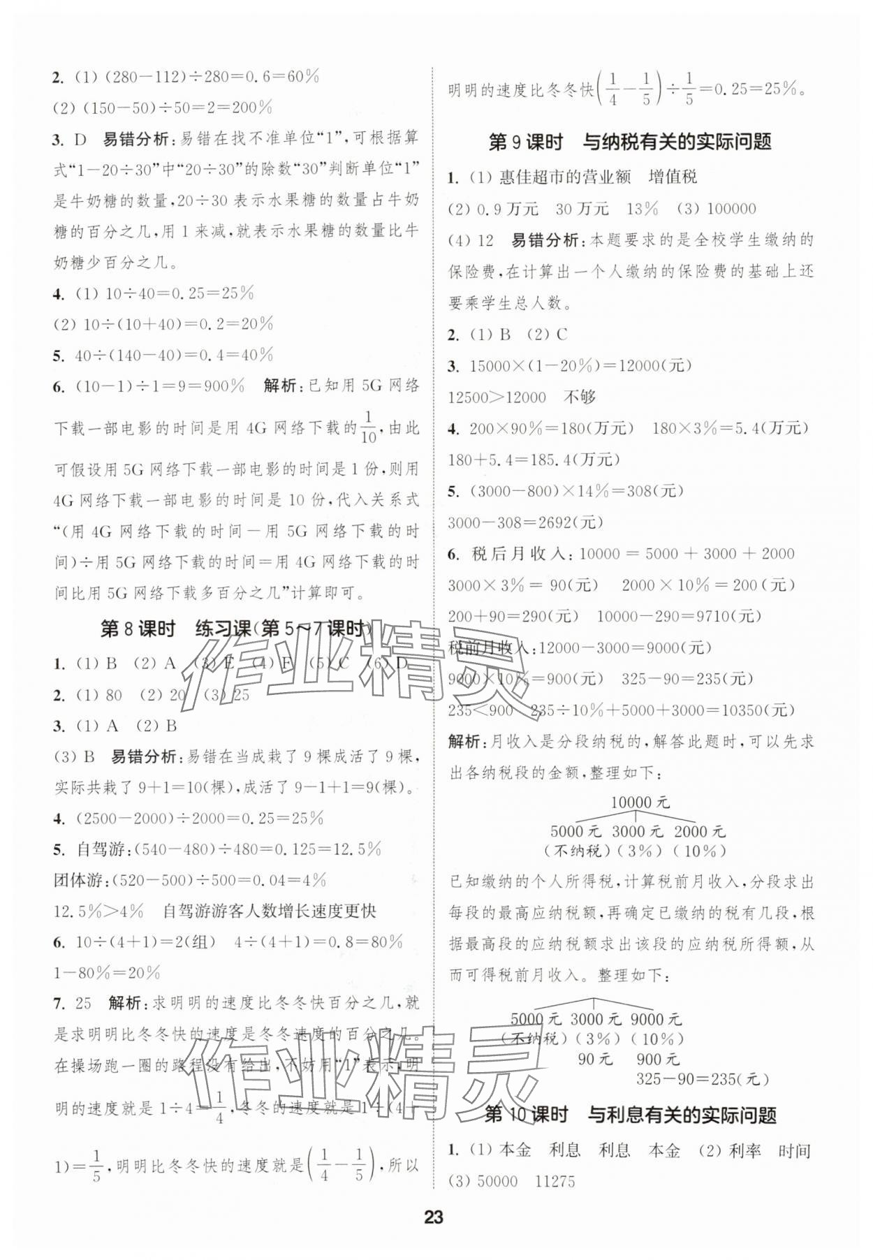 2025年通成学典课时作业本六年级数学上册苏教版安徽专版