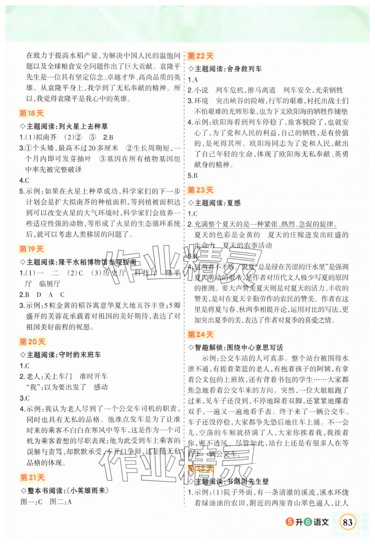 注:目前有些书本章节名称可能整理的还不是很完善,但都是按照顺序排列的,请同学们按照顺序仔细查找。练习册 2025年状元成才路暑假预备五年级语文人教版 答案主要是用来给同学们做完题方便对答案用的,请勿直接抄袭。