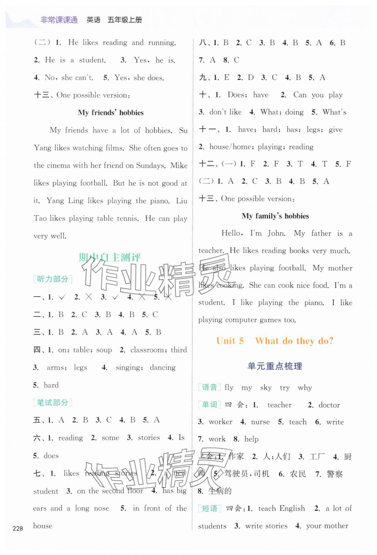 注:目前有些书本章节名称可能整理的还不是很完善,但都是按照顺序排列的,请同学们按照顺序仔细查找。练习册 2025年通城学典非常课课通五年级英语上册译林版 答案主要是用来给同学们做完题方便对答案用的,请勿直接抄袭。