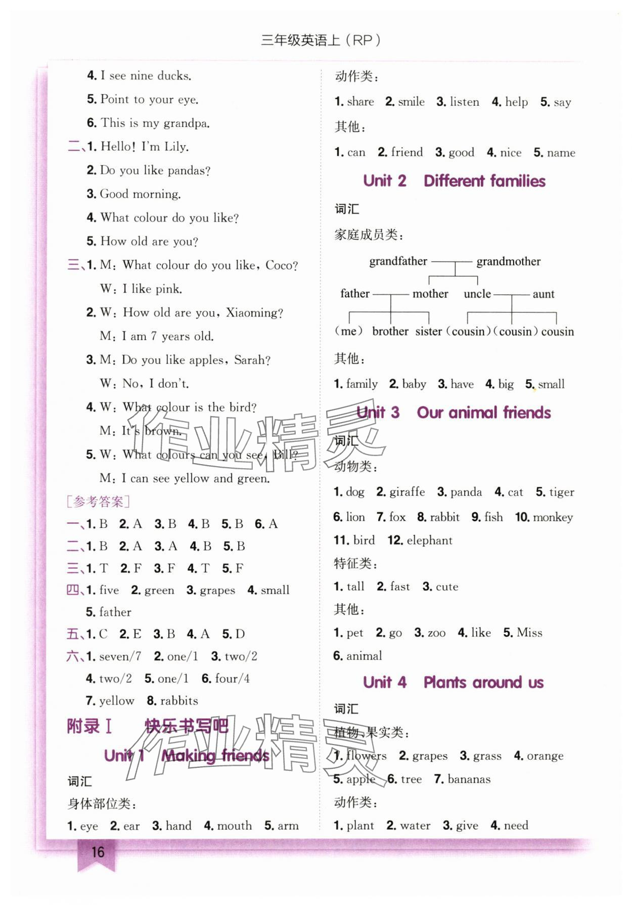 注:目前有些书本章节名称可能整理的还不是很完善,但都是按照顺序排列的,请同学们按照顺序仔细查找。练习册 2025年黄冈小状元作业本三年级英语上册人教版 答案主要是用来给同学们做完题方便对答案用的,请勿直接抄袭。