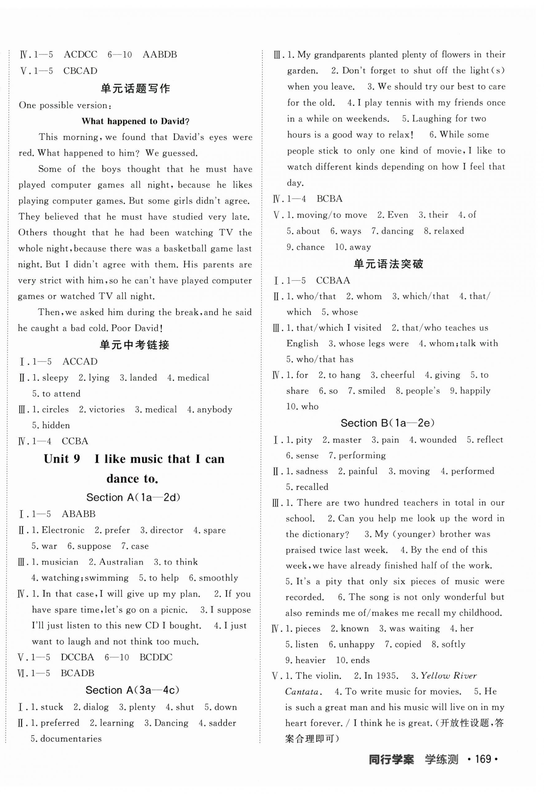 注:目前有些书本章节名称可能整理的还不是很完善,但都是按照顺序排列的,请同学们按照顺序仔细查找。练习册 2025年同行学案九年级英语上册人教版 答案主要是用来给同学们做完题方便对答案用的,请勿直接抄袭。