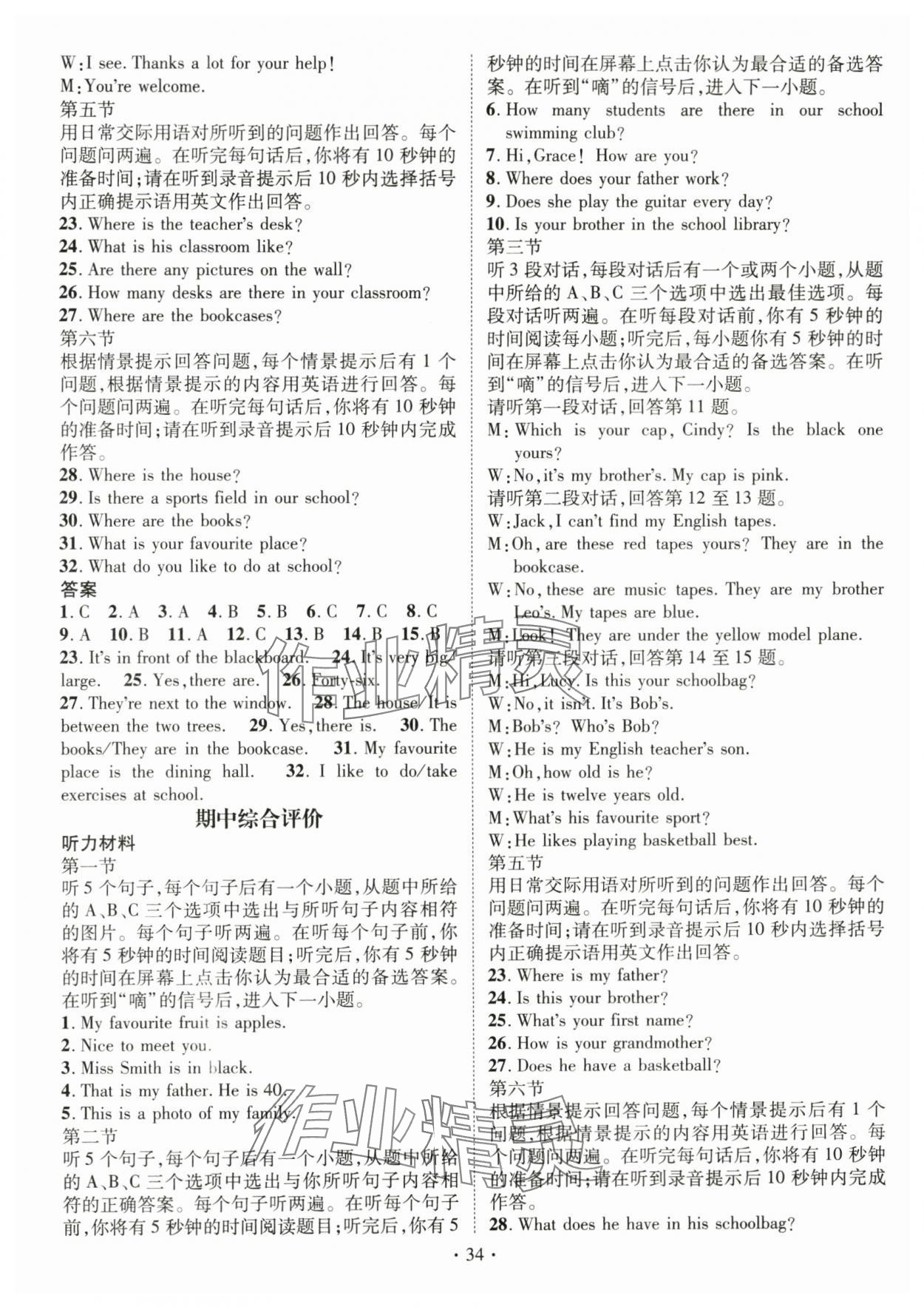 注:目前有些书本章节名称可能整理的还不是很完善,但都是按照顺序排列的,请同学们按照顺序仔细查找。练习册 2025年名师测控七年级英语上册人教版云南专版 答案主要是用来给同学们做完题方便对答案用的,请勿直接抄袭。