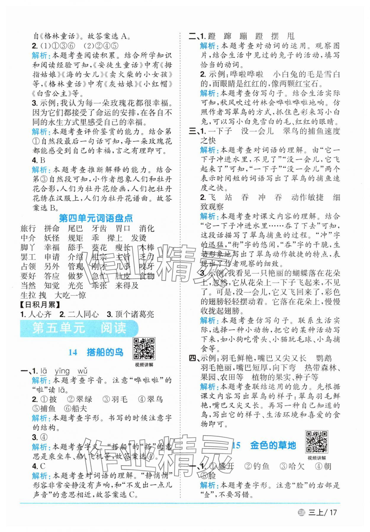 注:目前有些书本章节名称可能整理的还不是很完善,但都是按照顺序排列的,请同学们按照顺序仔细查找。练习册 2025年阳光同学课时优化作业三年级语文上册人教版五四制 答案主要是用来给同学们做完题方便对答案用的,请勿直接抄袭。
