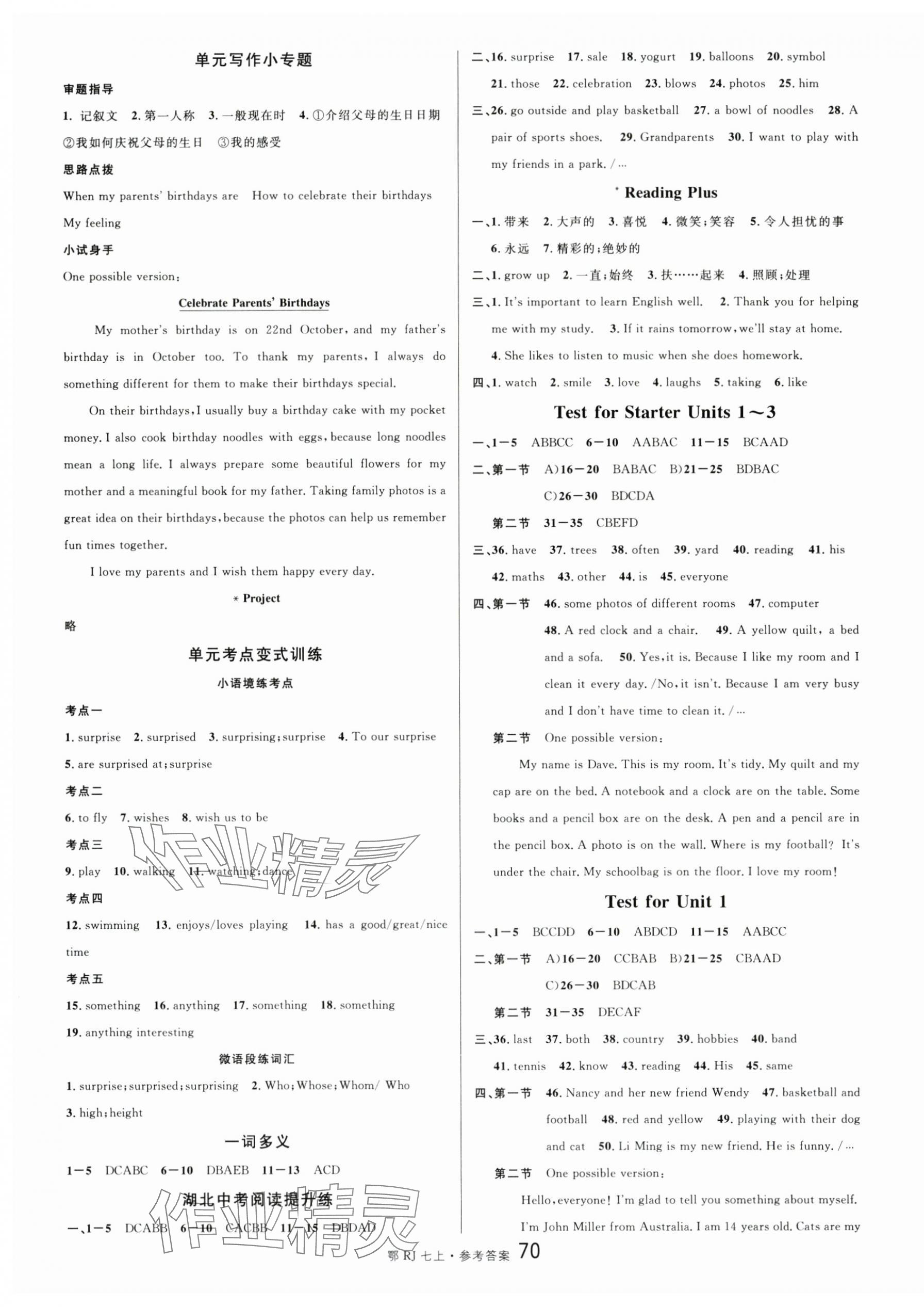 注:目前有些书本章节名称可能整理的还不是很完善,但都是按照顺序排列的,请同学们按照顺序仔细查找。练习册 2025年名校课堂七年级英语上册人教版湖北专版 答案主要是用来给同学们做完题方便对答案用的,请勿直接抄袭。