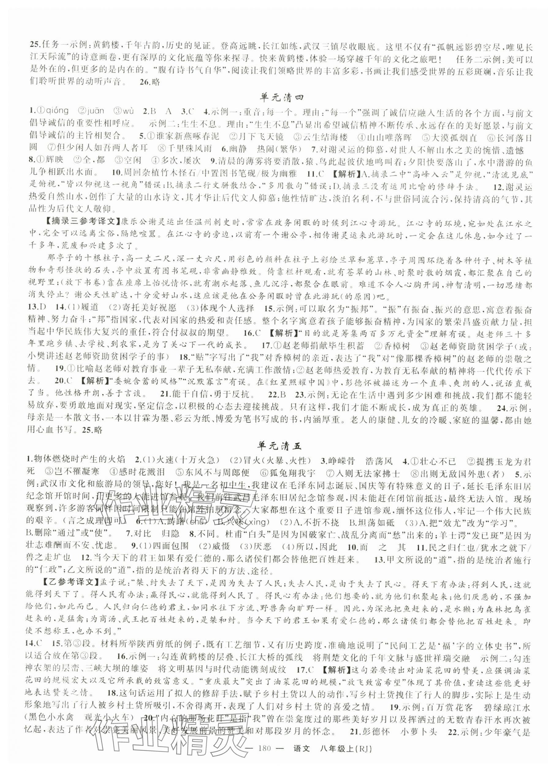 注:目前有些书本章节名称可能整理的还不是很完善,但都是按照顺序排列的,请同学们按照顺序仔细查找。练习册 2025年四清导航八年级语文上册人教版湖北专版 答案主要是用来给同学们做完题方便对答案用的,请勿直接抄袭。