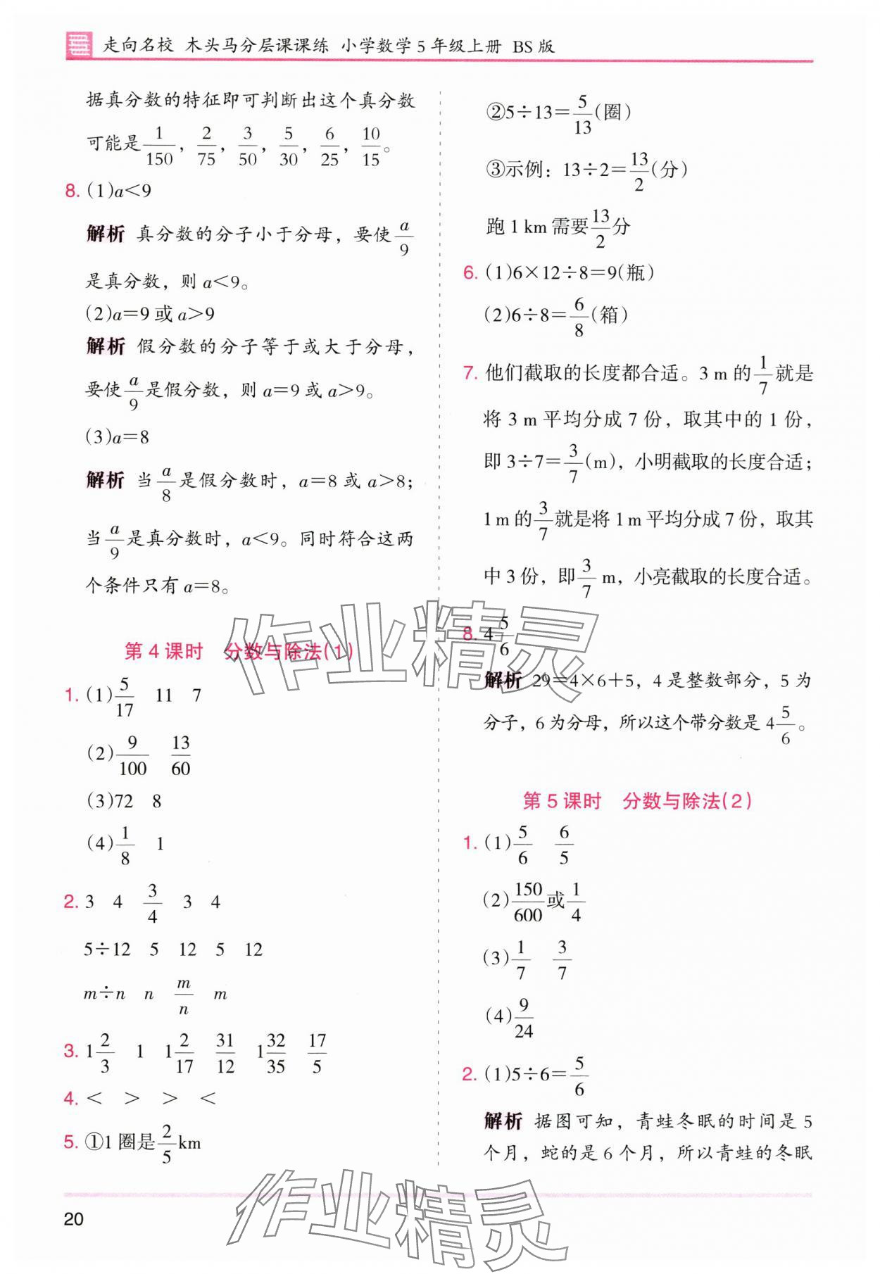注:目前有些书本章节名称可能整理的还不是很完善,但都是按照顺序排列的,请同学们按照顺序仔细查找。练习册 2025年木头马分层课课练五年级数学上册北师大版广东专版 答案主要是用来给同学们做完题方便对答案用的,请勿直接抄袭。