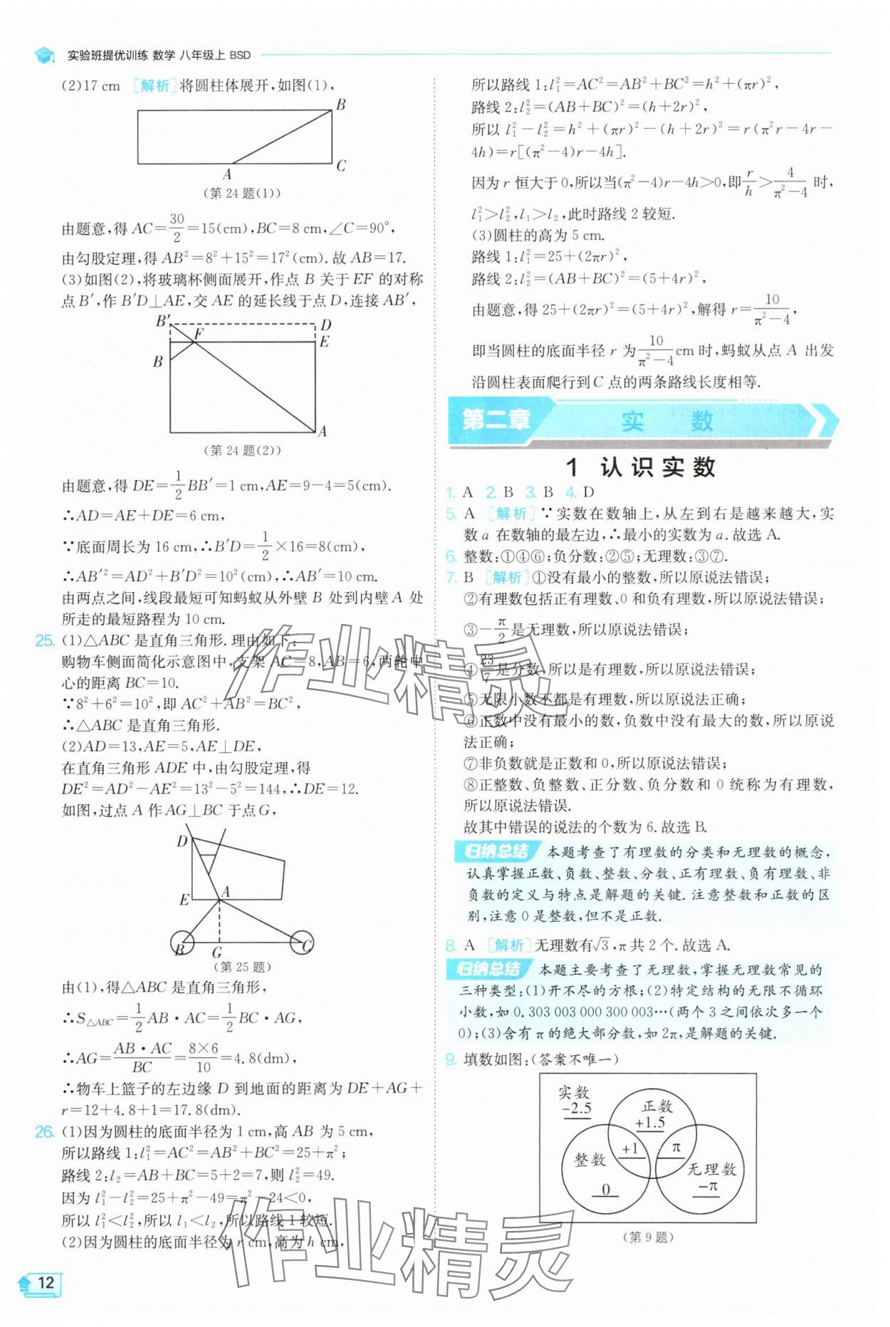 注:目前有些书本章节名称可能整理的还不是很完善,但都是按照顺序排列的,请同学们按照顺序仔细查找。练习册 2025年实验班提优训练八年级数学上册北师大版 答案主要是用来给同学们做完题方便对答案用的,请勿直接抄袭。