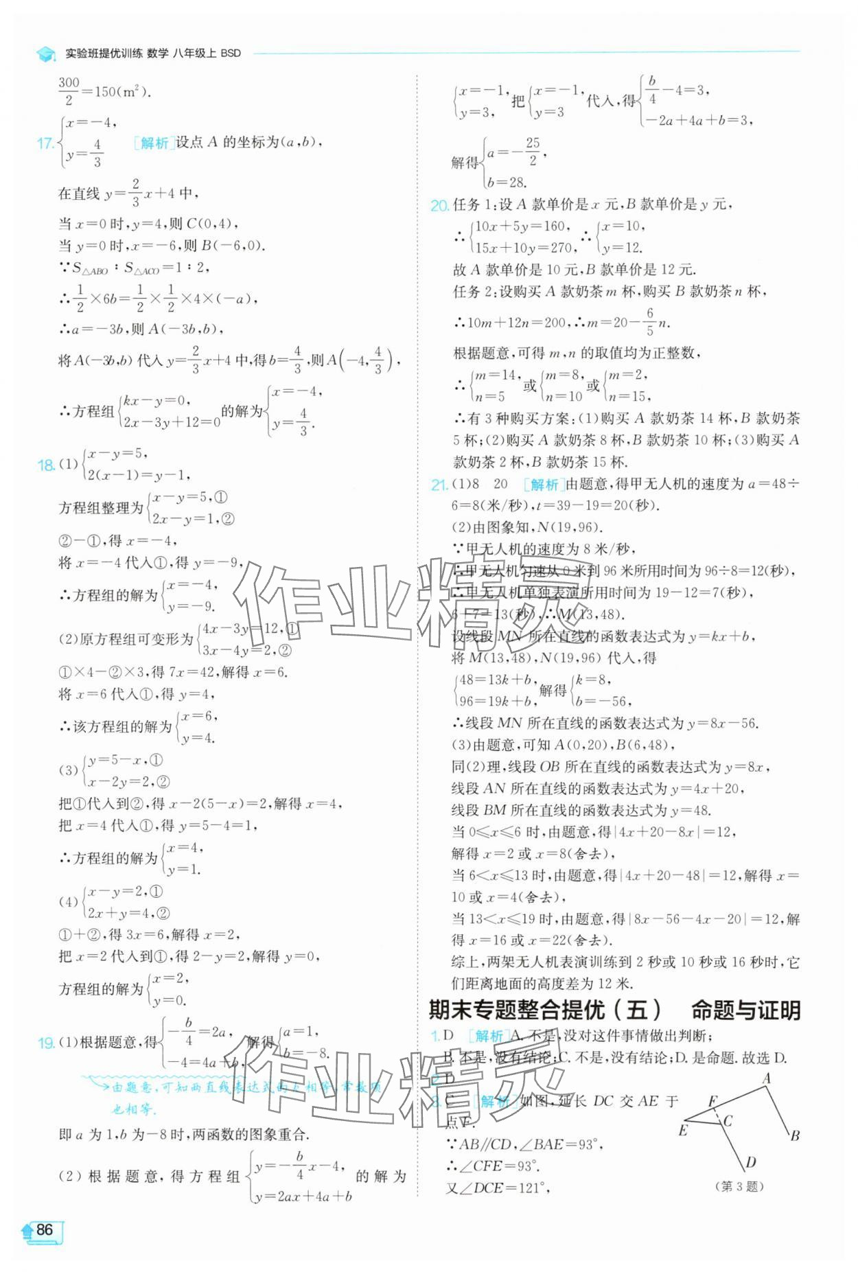 注:目前有些书本章节名称可能整理的还不是很完善,但都是按照顺序排列的,请同学们按照顺序仔细查找。练习册 2025年实验班提优训练八年级数学上册北师大版 答案主要是用来给同学们做完题方便对答案用的,请勿直接抄袭。