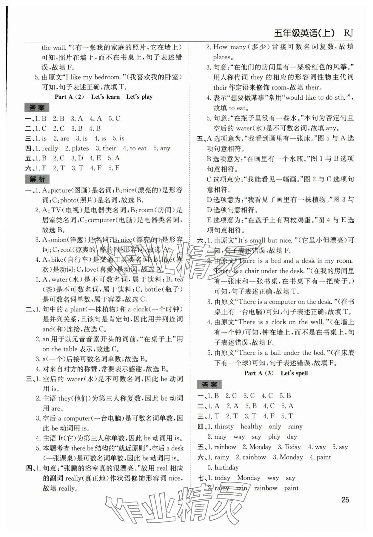 注:目前有些书本章节名称可能整理的还不是很完善,但都是按照顺序排列的,请同学们按照顺序仔细查找。练习册 2025年阳光课堂课时作业五年级英语上册人教版 答案主要是用来给同学们做完题方便对答案用的,请勿直接抄袭。