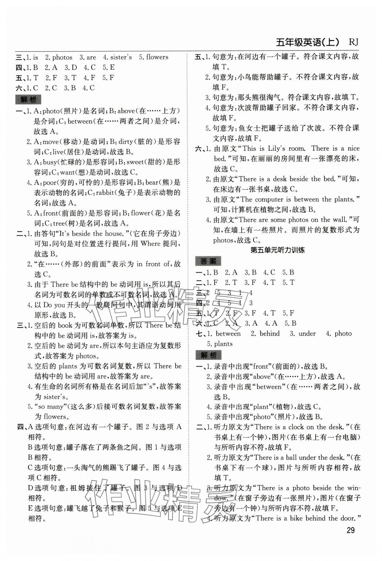 注:目前有些书本章节名称可能整理的还不是很完善,但都是按照顺序排列的,请同学们按照顺序仔细查找。练习册 2025年阳光课堂课时作业五年级英语上册人教版 答案主要是用来给同学们做完题方便对答案用的,请勿直接抄袭。