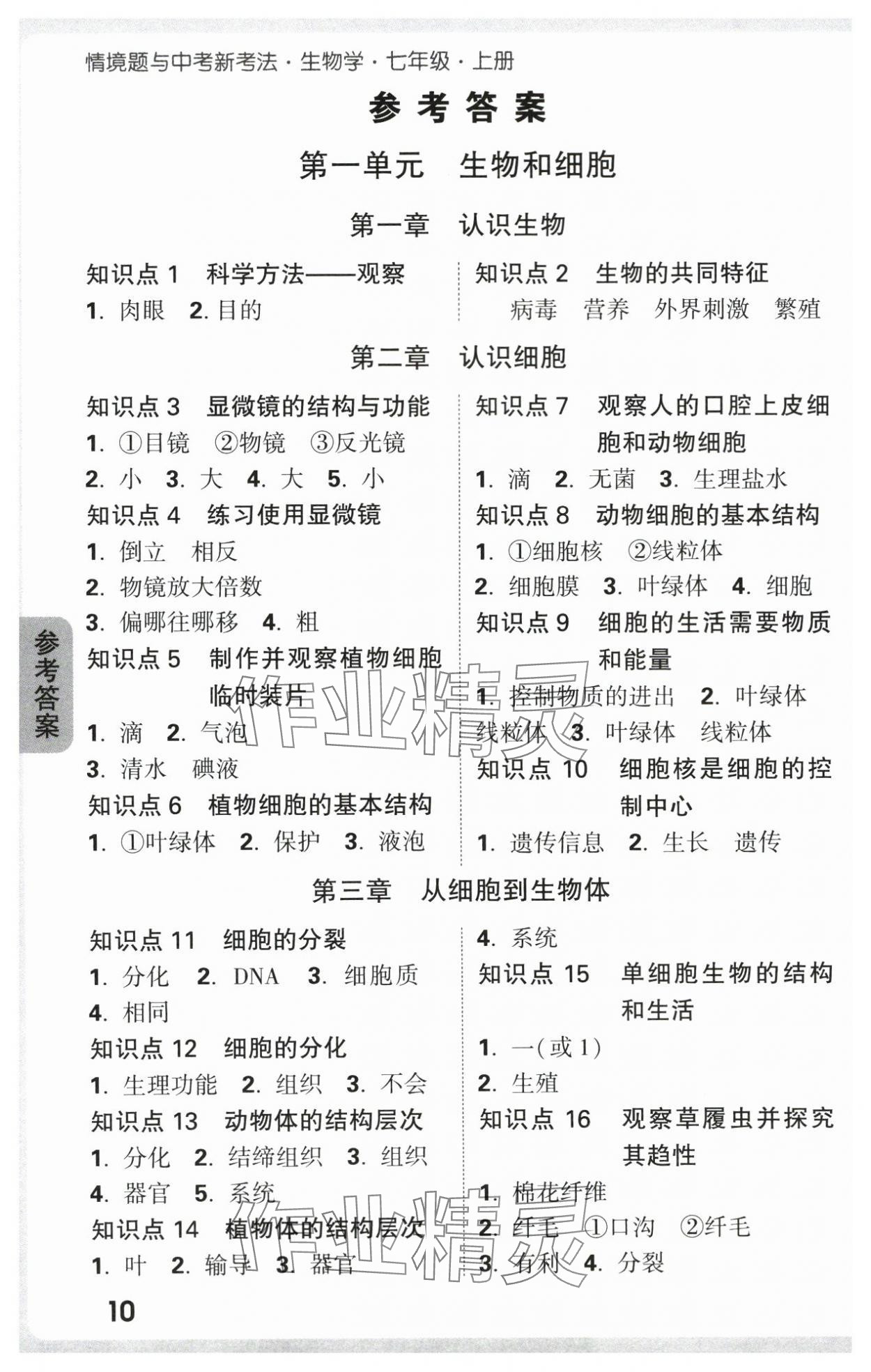 注:目前有些书本章节名称可能整理的还不是很完善,但都是按照顺序排列的,请同学们按照顺序仔细查找。练习册 2025年万唯中考情境题七年级生物上册人教版 答案主要是用来给同学们做完题方便对答案用的,请勿直接抄袭。